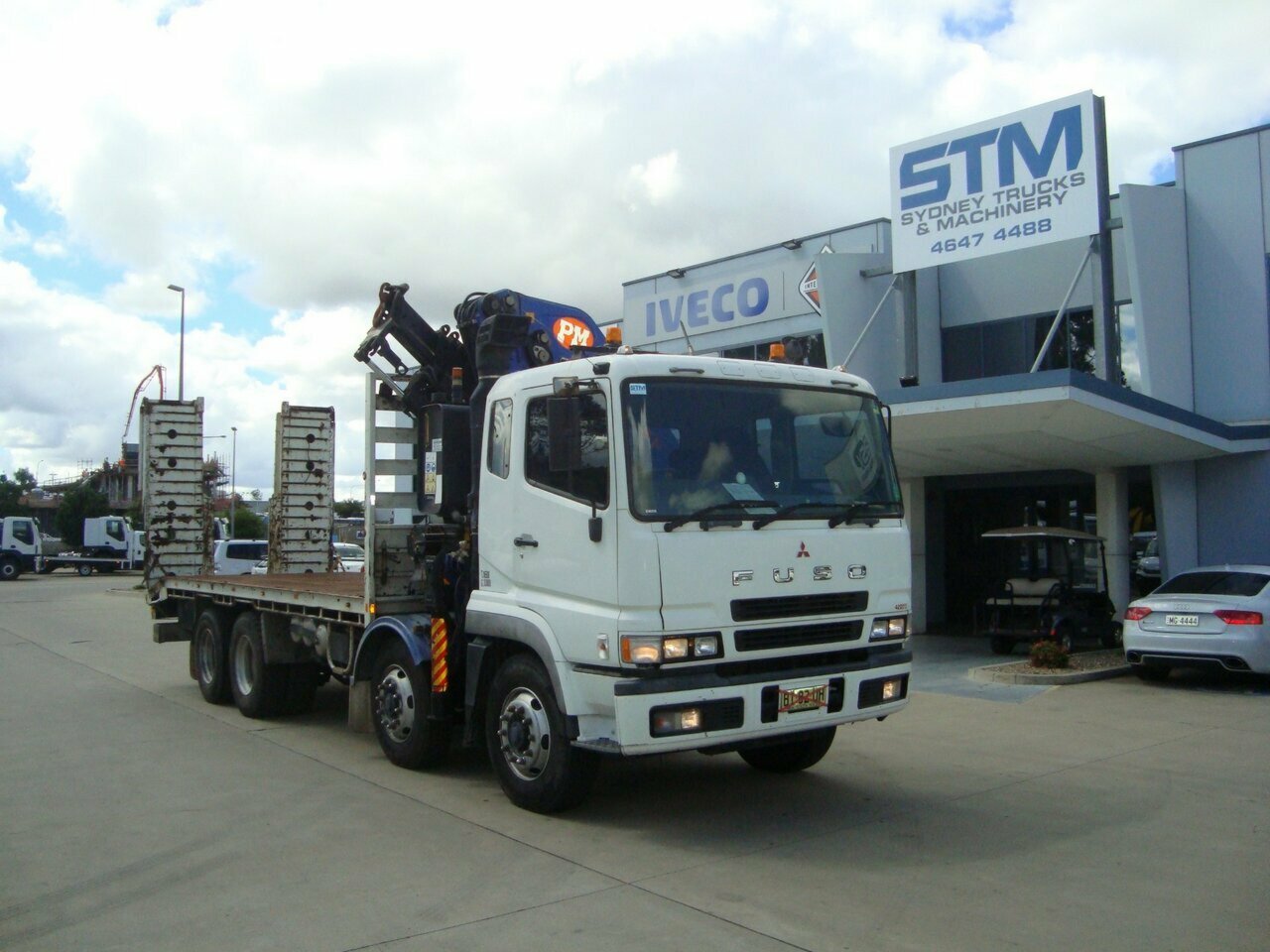 2010 Fuso FS52 8x4, 420 hp engine, 18 speed manual transmission, Beaver tail body with hydraulic ramps, Flat deck section is 6 m long. PH27024 Front mounted crane with remote control and 4 extensions. Toolboxes, GVM 30,000 and tare is 16,500 kgs Ready to go to work for you. Call our used truck team to organise an inspection.