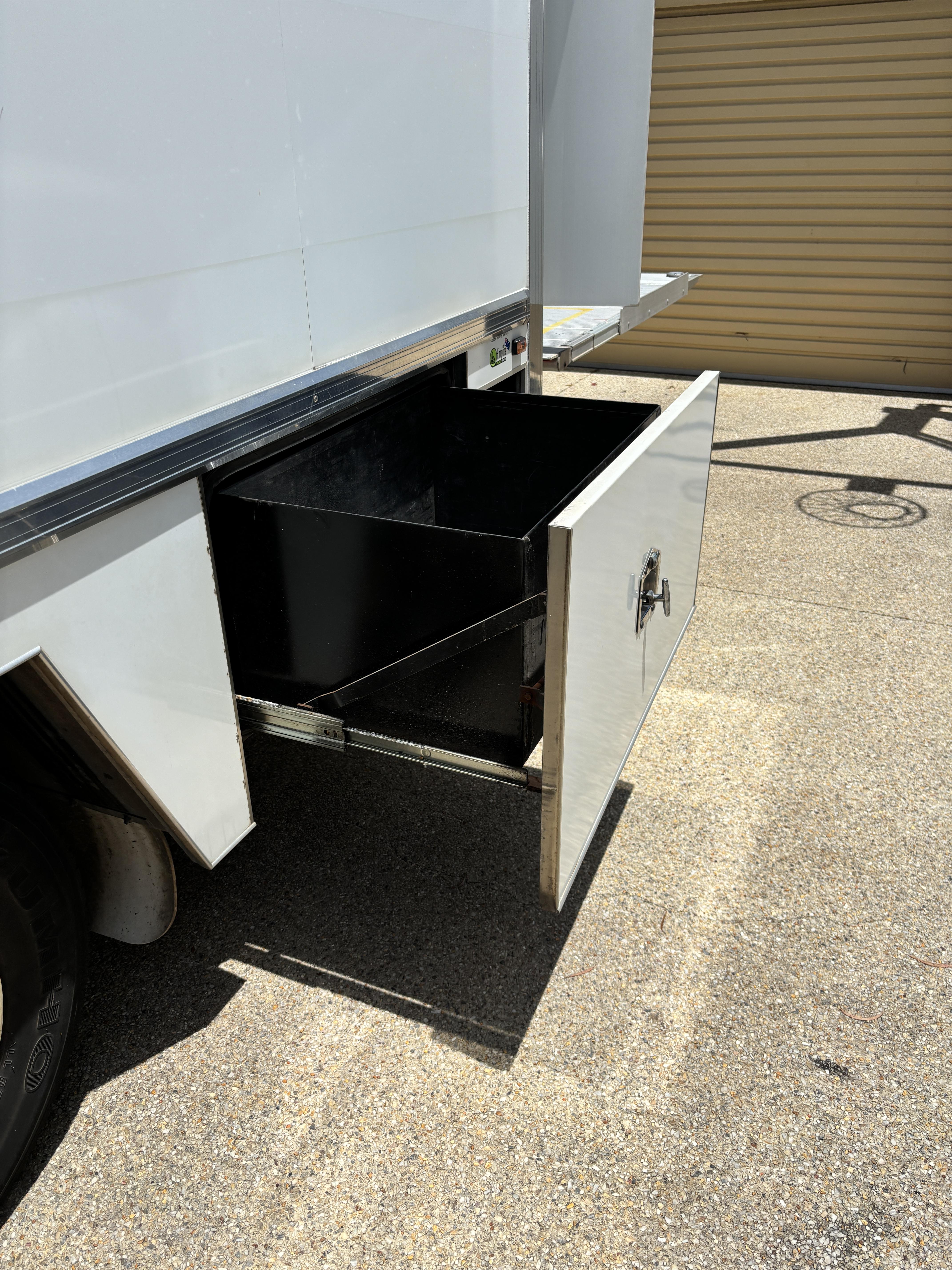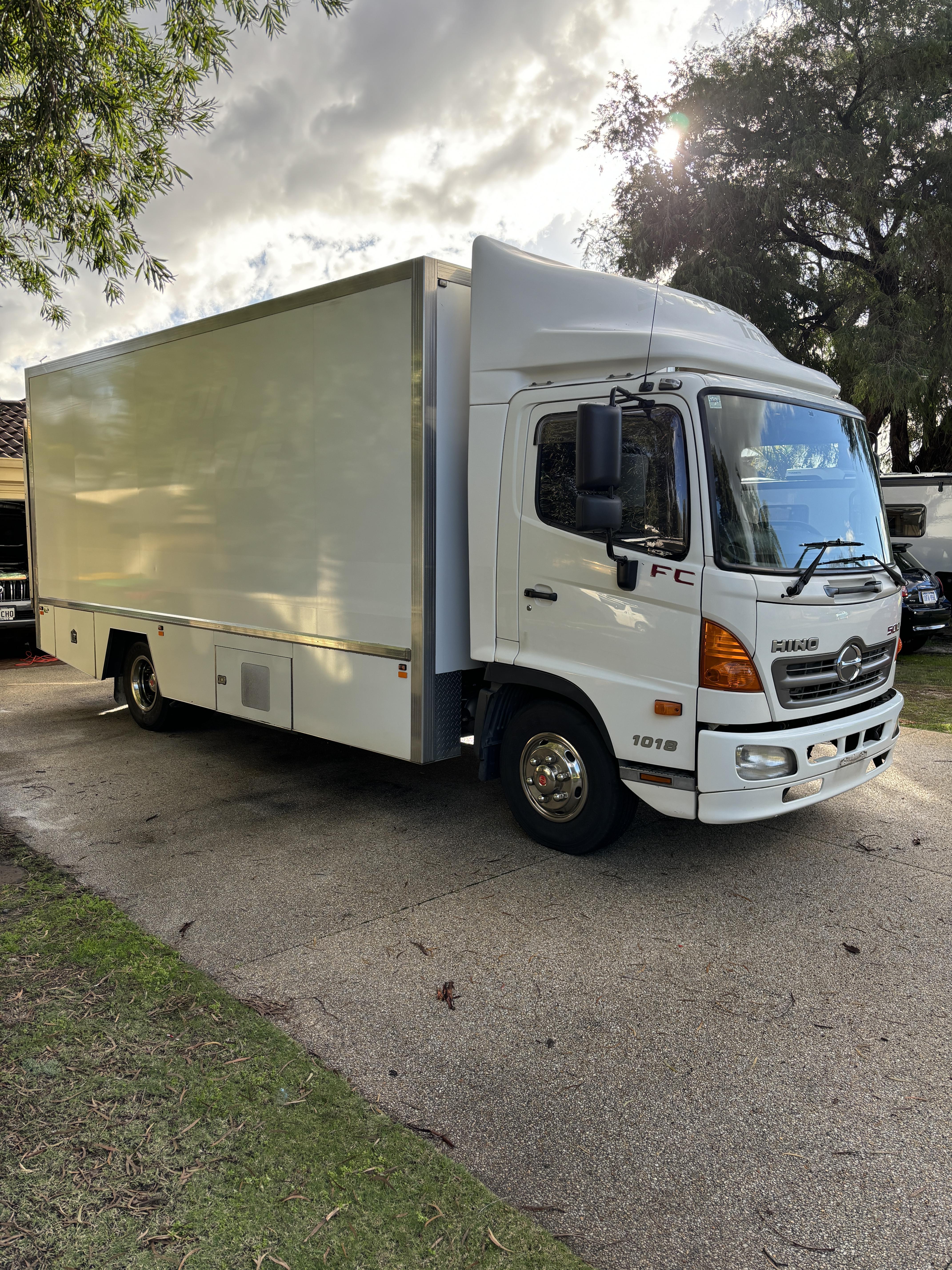 HINO FC1018 mid wheel base 6 speed manual Ex Snapon Tools Cummins Onan 5kva gen set 240v inverter Air conditioned in rear Insulated Anteo tail lift Great condition, Ideal for camper conversion, mobile workshop, food van.