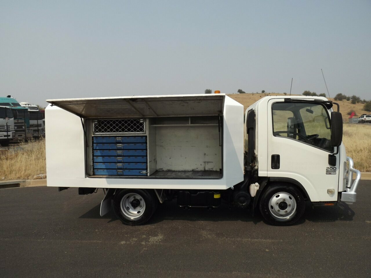 2010 Isuzu NLR200 *3.2mtr service body *Towbar, A/C *150hp turbo engine *5 speed gearbox *4500kg GVM Stock number: 2851