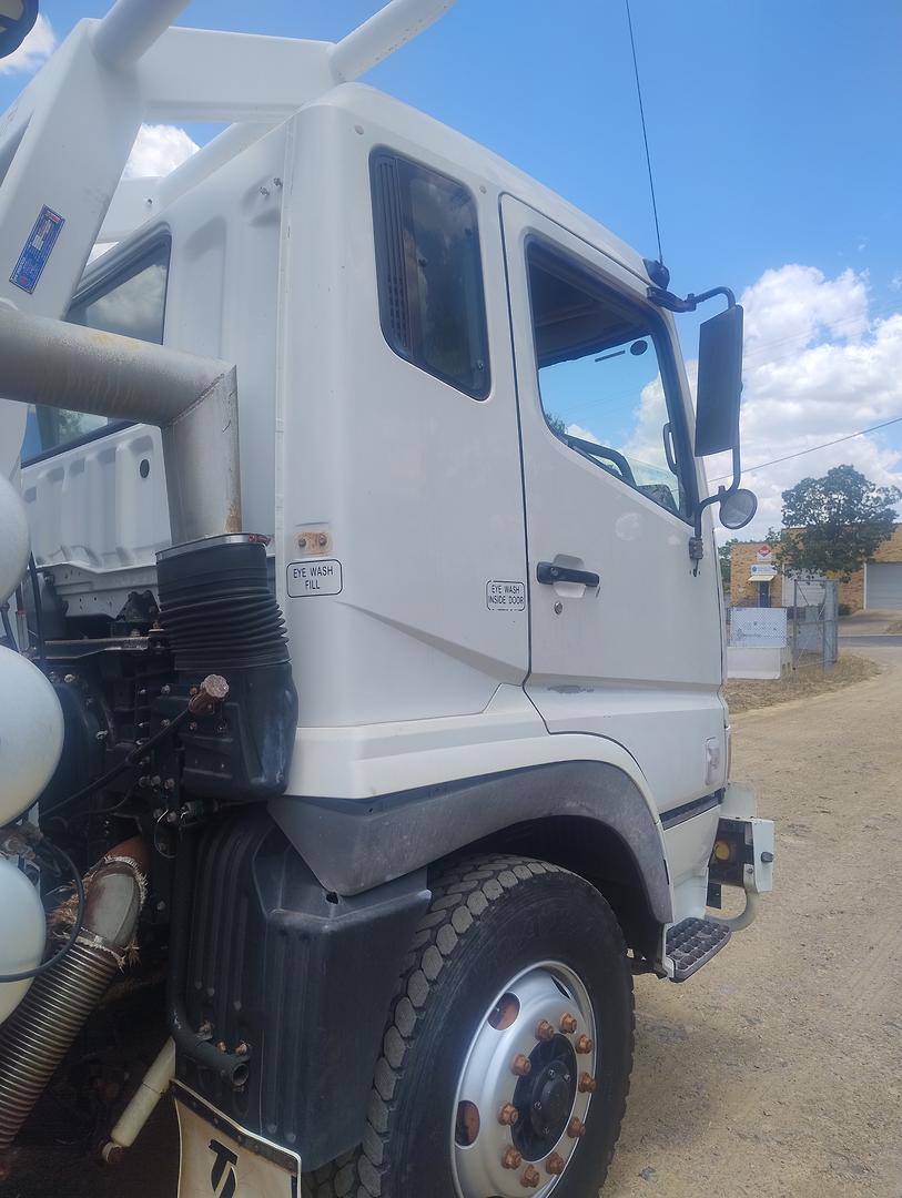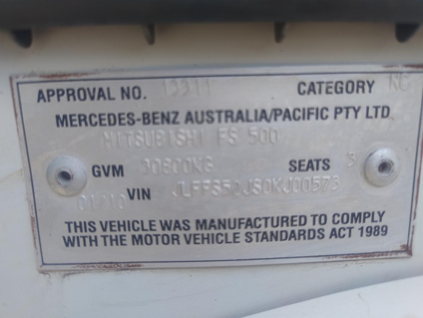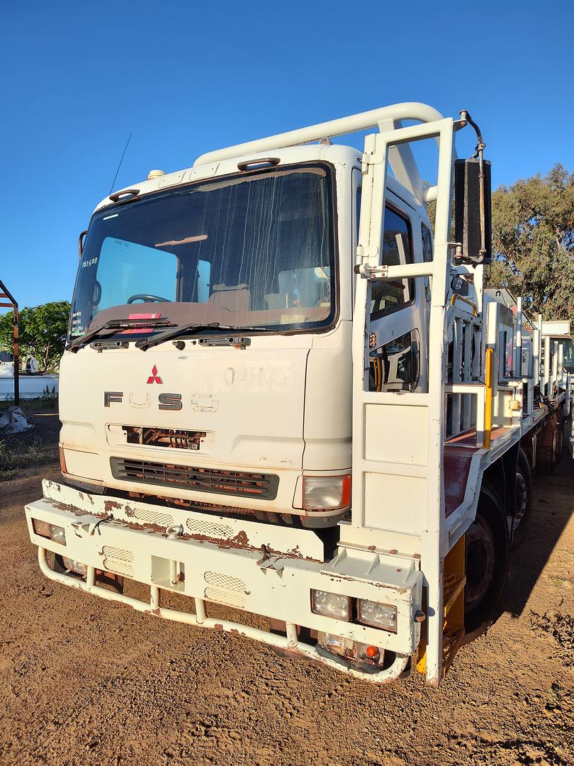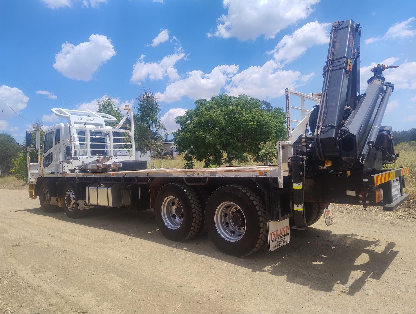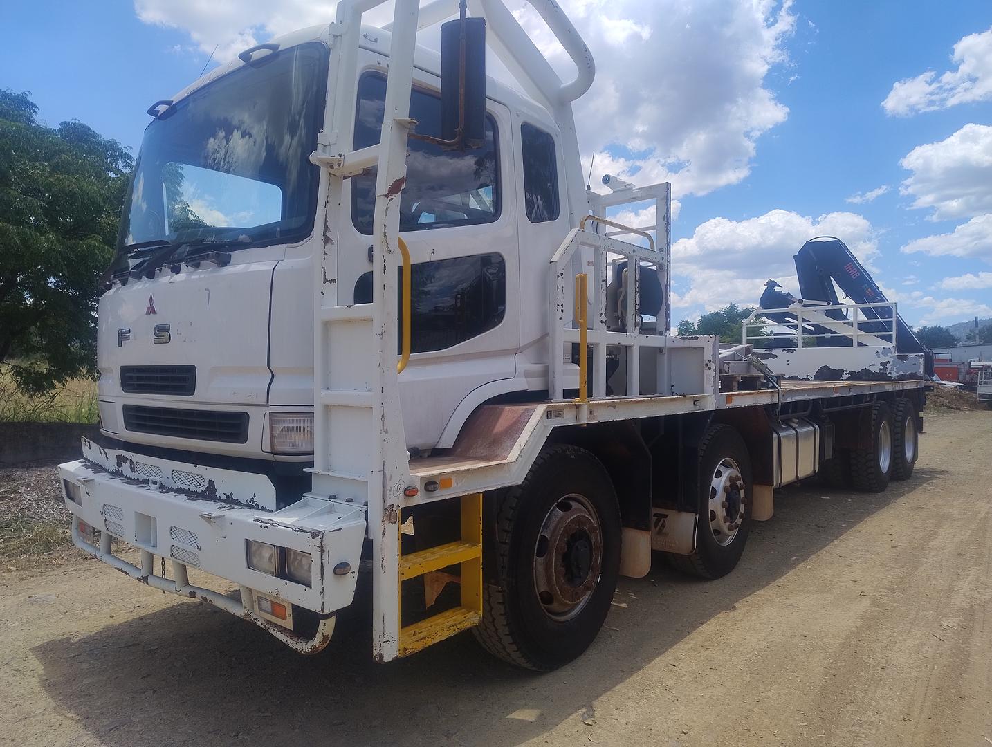 2010 Mitsubishi FS 500 8x4 Island cab, Crane Truck, Allison Automatic, 30800kg GVM, Rear mounted Hiab 122, with remote.