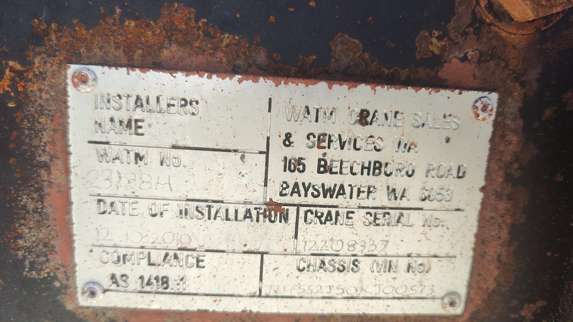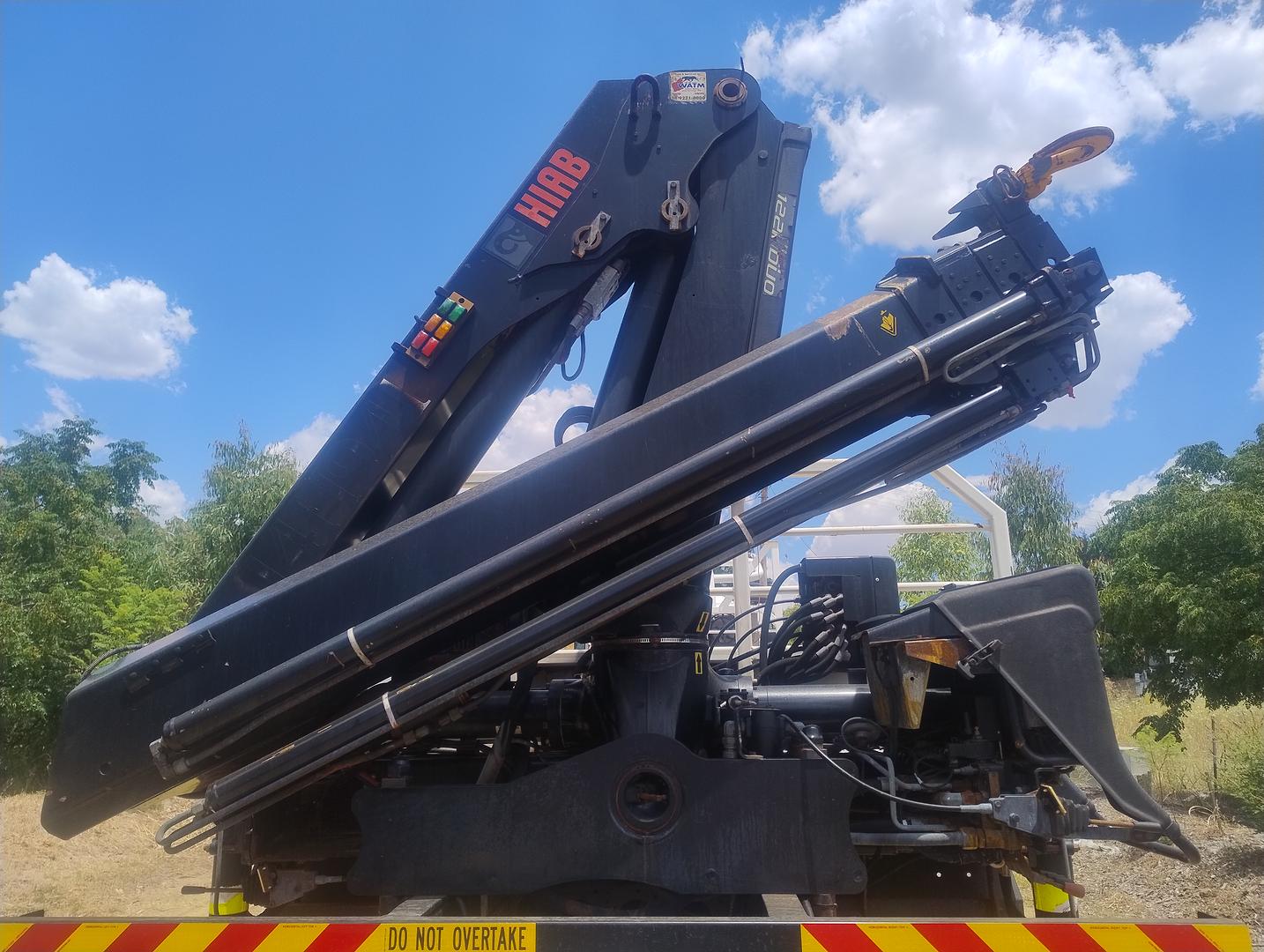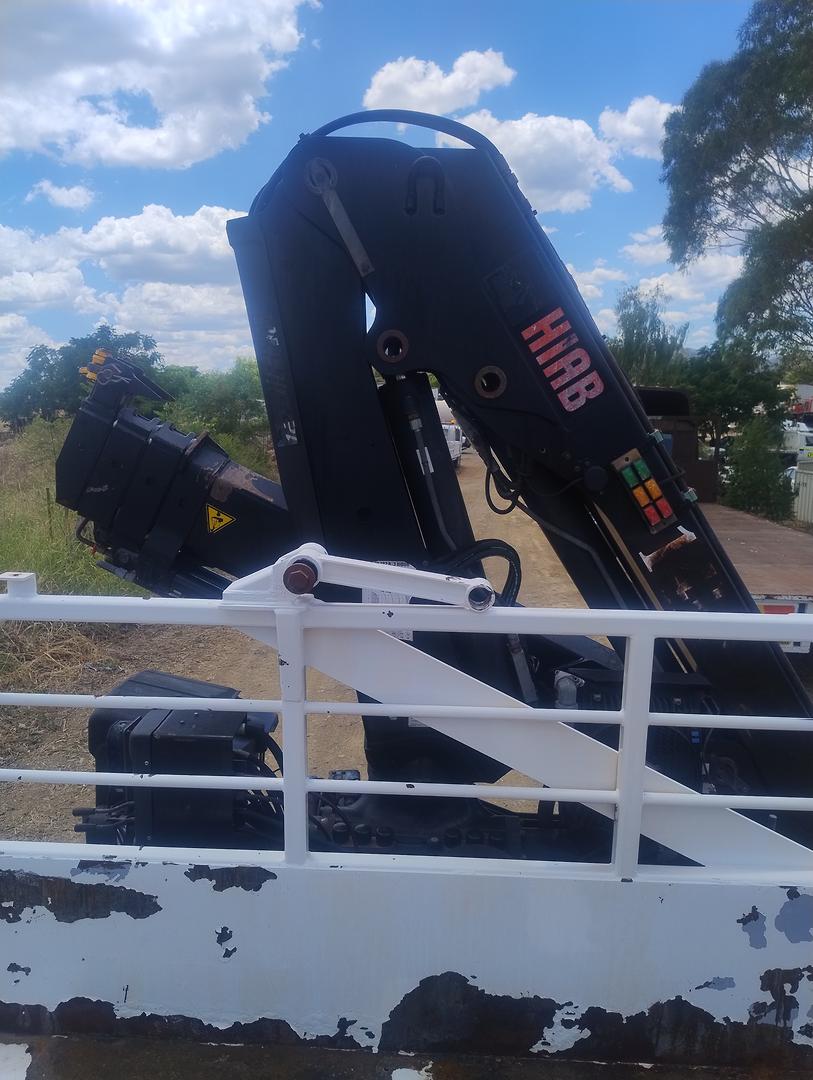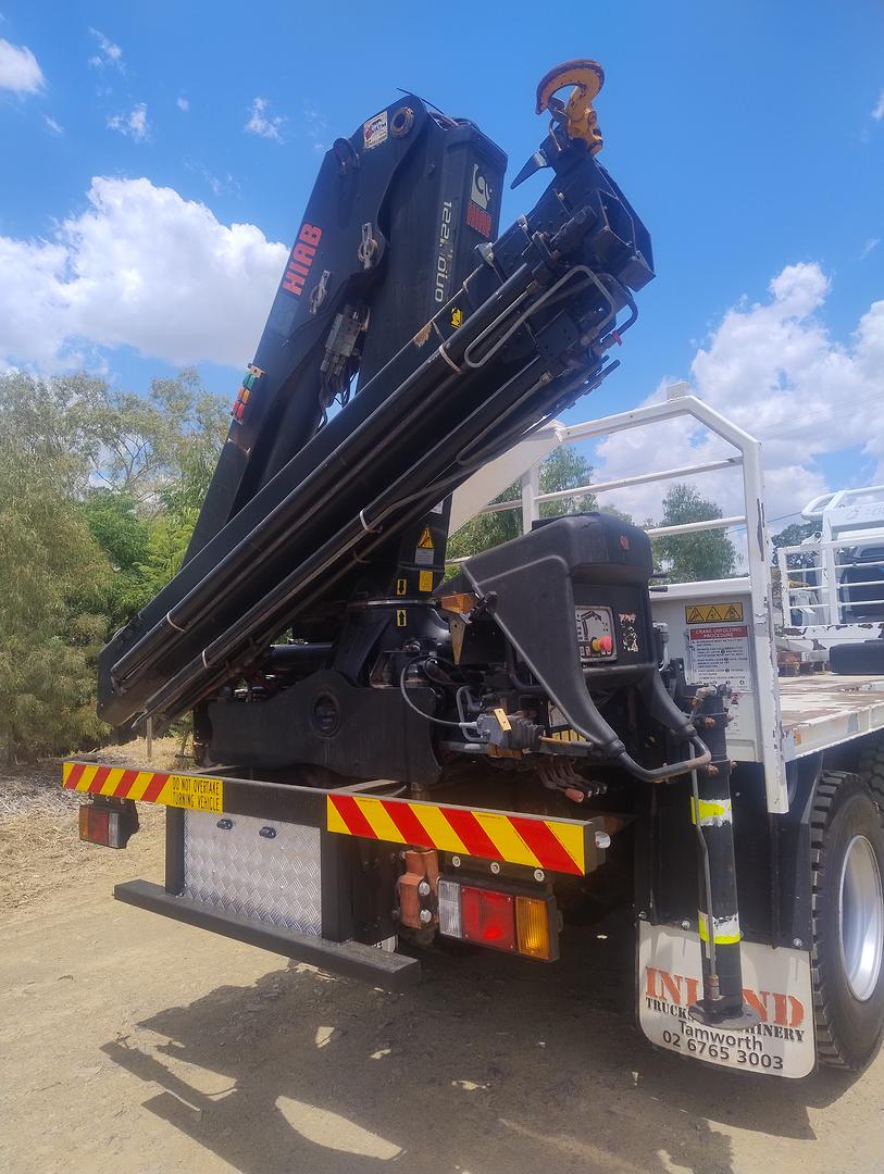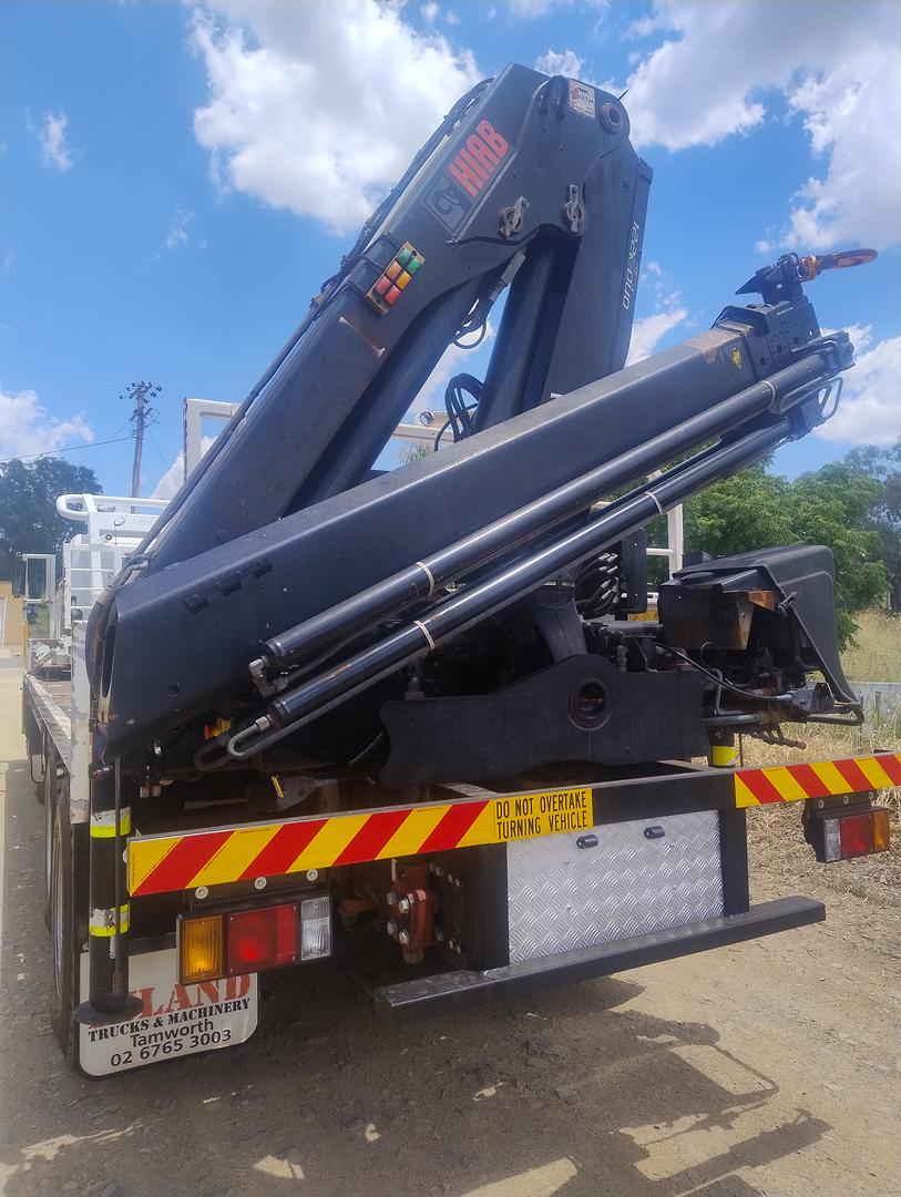 will lift 3.6t at 3m and 1t at 10m, Existing tray is 6.9m long with capacity for 9m lengths beside cab. Crane is out of compliance, and can be recomplied if required. We are also able to fit a full cab if required.