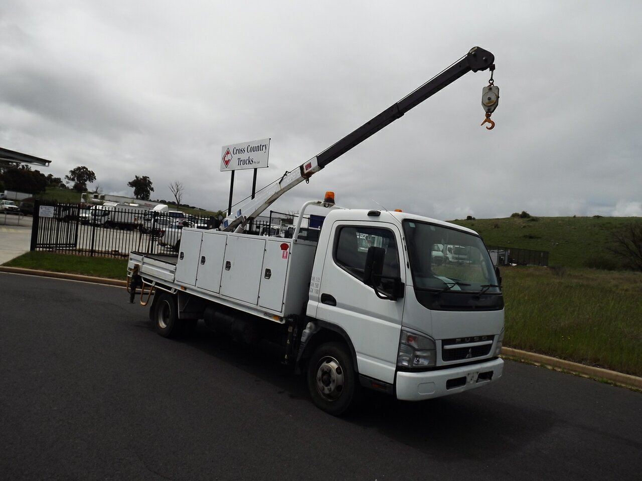 2010 Mitsubishi Fuso Canter FE85 * 4.7mtr Service body, towbar, maxilift 6600 Cobra Crane * Air-Conditioning * 150hp turbo engine * 5 speed gearbox * 7500kg GVM * 11000kg GCM Stock Number: 7907 For more information please call Peter on 0263612244 or 0438441474