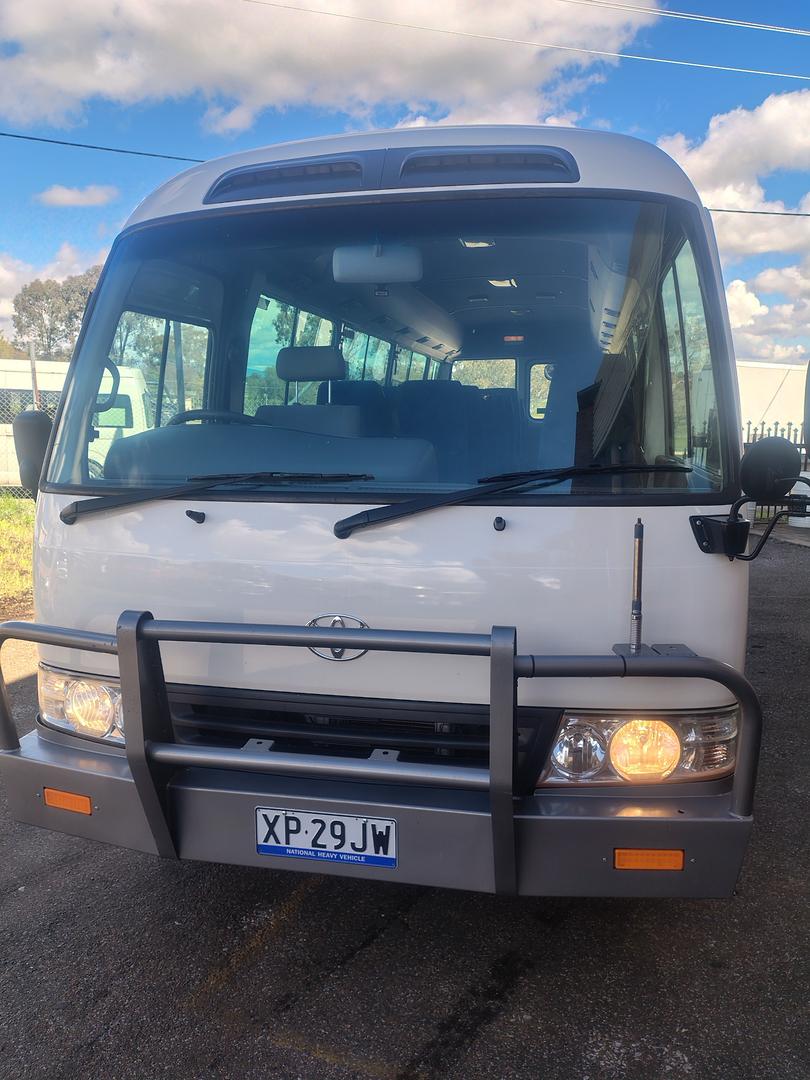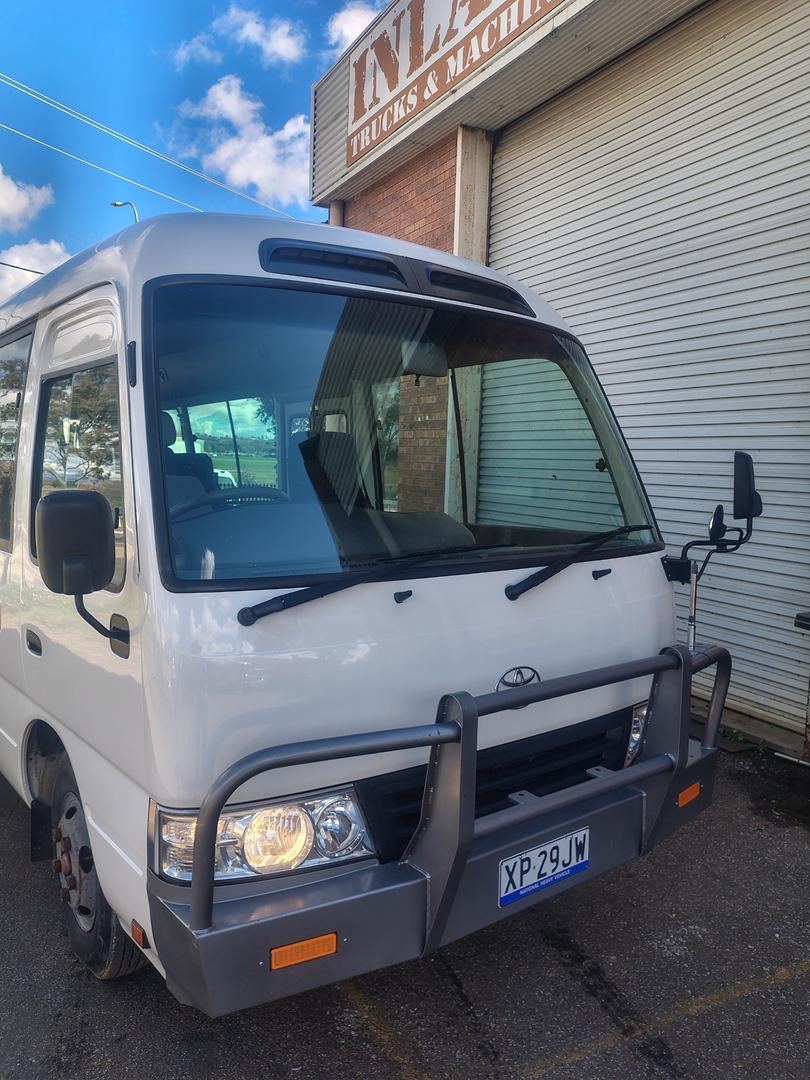 2010 Toyota Coaster Bus, Deluxe high back seats with full seat belts, 4.1 Diesel turbo with 5 speed manual, runs and drives well, current rego until2 3/7/26 and ready for work.