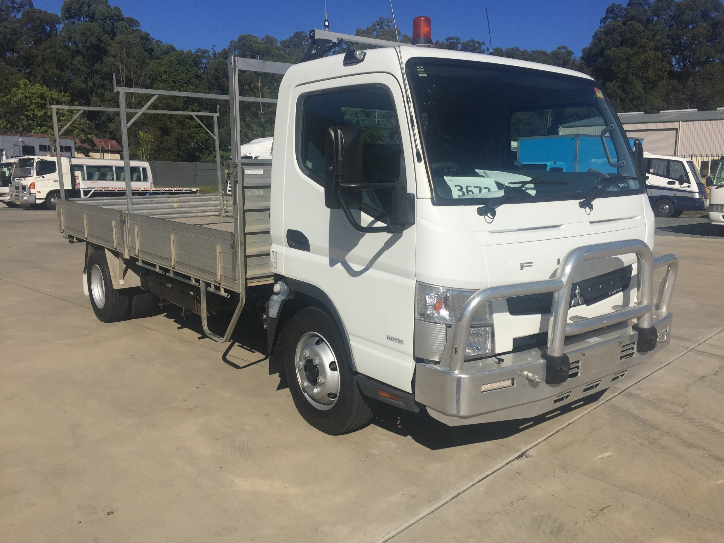 2011 MITSUBISHI/FUSO CANTER 918 FITTED WITH A 4.5M LONG X 2.3M WIDE X .38M HIGH ALLOY DROP SIDED TABLE TOP, ALLOY BULLBAR, LADDER RACKS, MEDIUM RIGID LICENSE REQUIRED.