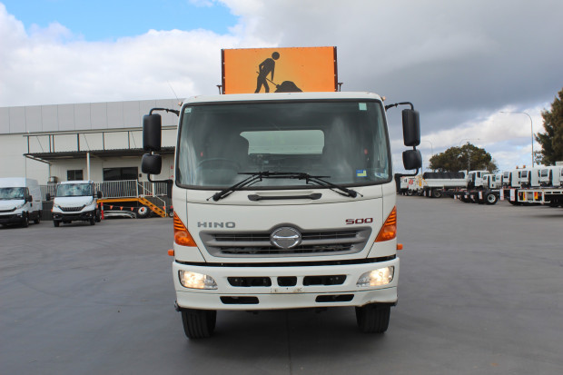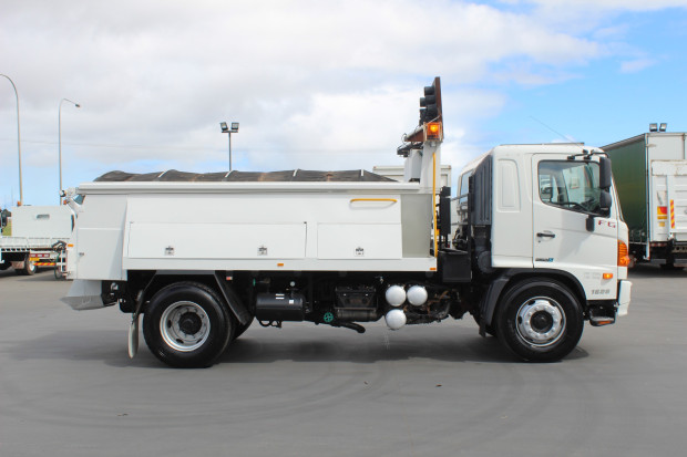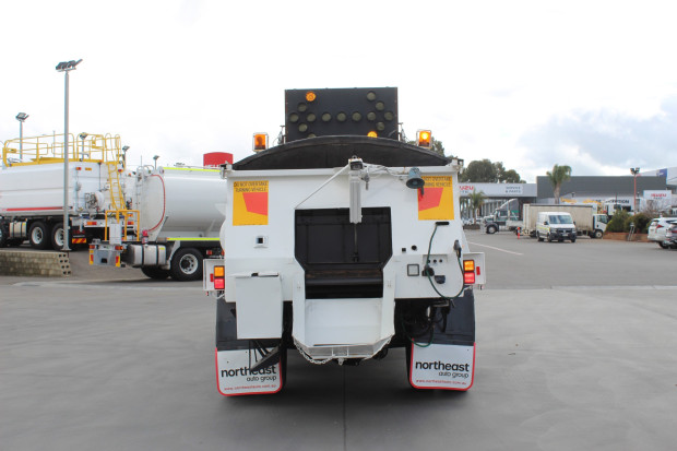 2011 Hino FG 1628-500 *EX Council* Fitted with a Flocon Body Compactor Plate Lifter, Emulsion Tank, Rear Chute, Shovel Bin Air Operatored Rear Door, Side Tipping Spoil Sin, Electronic Arrow Beard ,Amber Beacons, Reverse Cameras, Wind Out Tarp, Cone Spike, Water Tank with Hose Reel, 280 Horsepower Turbo Diesel, Allison Automatic Transmission.Travelled only 130,136 klms.