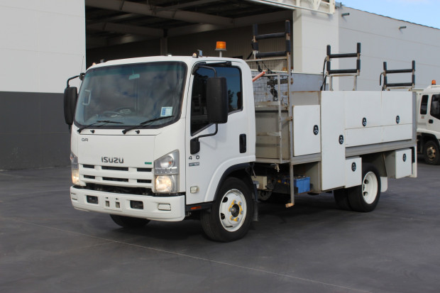 2011 Isuzu NQR 450, 4.0m x 2.3m Service Body With Sign Rack, Ladder Rack, Water Tank And Tap, Pull Out Step, Cone Holders, Power Windows, Driver And Passenger SRS Airbags, Heated Mirrors, Digital Audio Visual System, Power Steering, Air Conditioning, 6 Speed Manual Transmission, Travelled 159,490kms