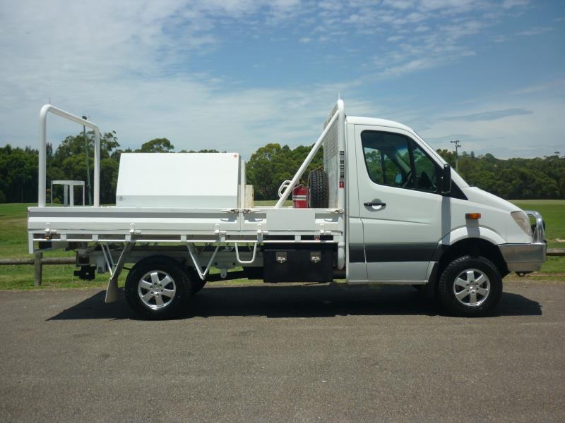 4X4 4x4 4x4 4x4 FOUR WHEEL DRIVE Mercedes Sprinter Cab Chassis Single Cab TDi Manual with $8,500 worth of extras that include Custom Steel Tray, Ladder Racks, 4x Service Boxes, Bull Bar, Tow Bar, Spot Lights and also note that it has 4 Brand New A/T Tyres. Dimensions of the tray are as follows, Length: 3.5m and Width: 2.3m. This vehicle has been maintained to a high standard from new. Other features include: Central Locking - Remote/Keyless, Cruise Control, Bluetooth System, EBD (Electronic Brake Force Distribution), Engine - Cylinder Shutdown (Fuel Economy), ABS (Antilock Brakes), Engine Immobiliser, Air Cond. - Climate Control, Multi-function Steering Wheel, Airbags, Power Steering and Power Windows. Have complete confidence buying from an Australian owned and operated dealership. Appointments are necessary due to all our vehicles being locked under cover for security and cleanliness reasons. Be assured that all our vehicles are of a very high standard as we are genuinely "fussy" people. Lots of other vehicles to choose from. ABN holders will receive a tax invoice to claim the GST back on this vehicle. We can deliver anywhere in Australia so don't let distance hold you back! Also note that our cars are guaranteed not to be on any type for register for finance, accidents, speedometer discrepancies etc. All have been thoroughly checked.