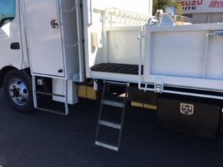 Drop Sides, Two way Tailgate, Access Steps, Large Chassis Toolbox, Sign Rack, Amber Beacons, Multi Hitch Tow Bar, Electric Trailer Brakes, Twin Fuel Tanks, Air Conditioning, Power Windows, Electric Mirrors,Dual SRS Airbags, 4 Cyclinder Turbo, 6 Speed manual, LOW KMS!!
