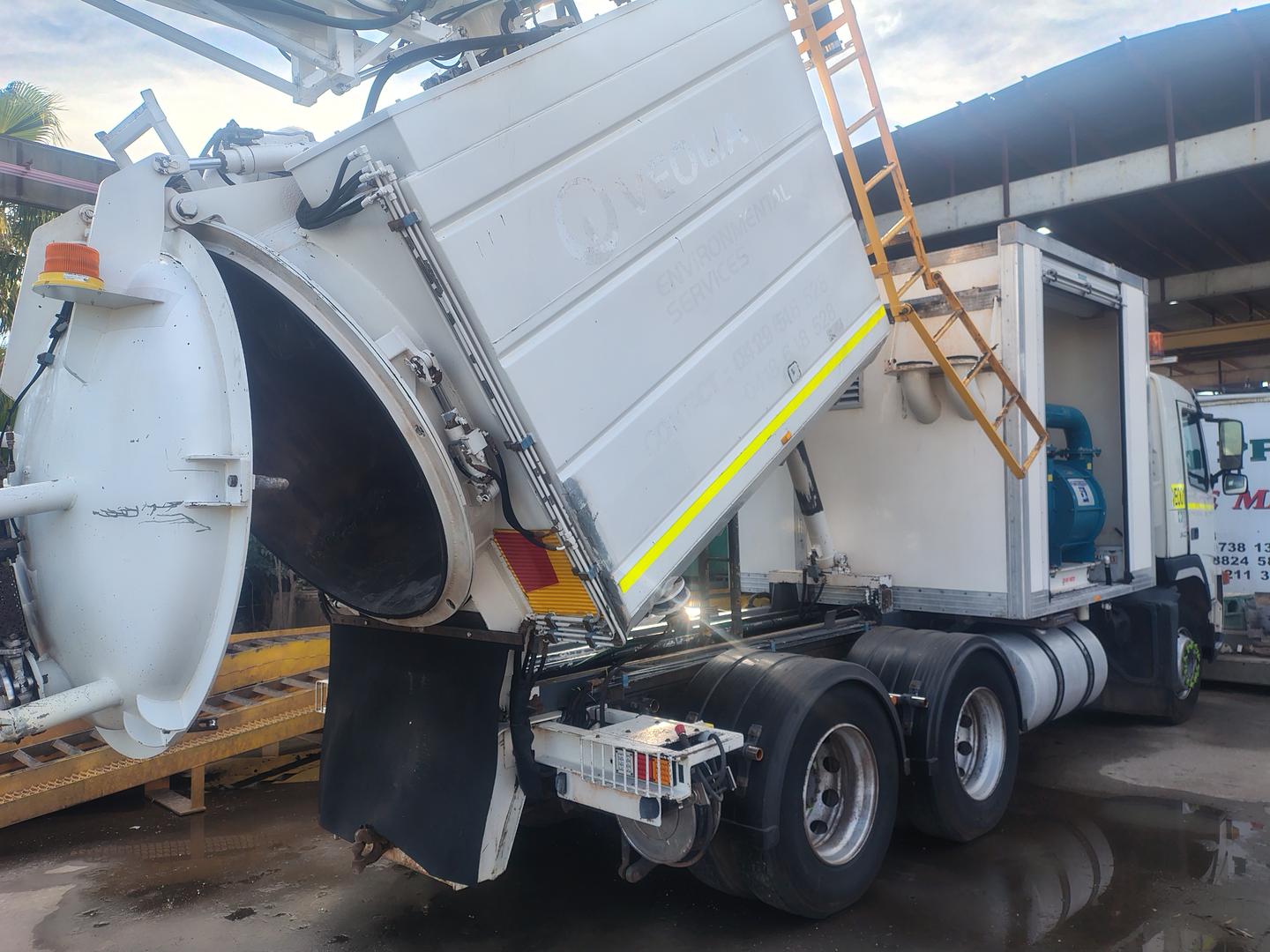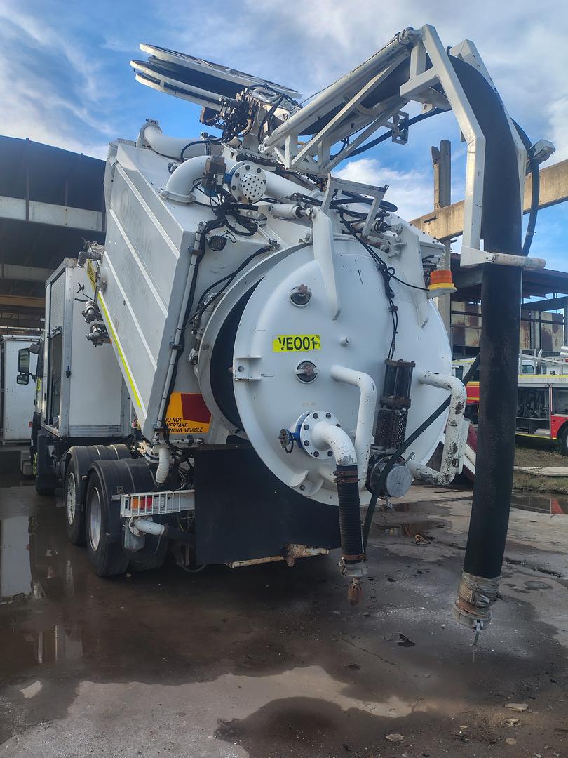 2004 Volvo FM9 6x4 Spoutvac SV3750 Vacuum/ jetter combination, Vac unit replaced in 2023, N2BE 3000 Liquid ring vacuum pump, 5mm Stainless steel tank, Bubbler air filtration system with cyclone separation. Extendable vacuum boom.