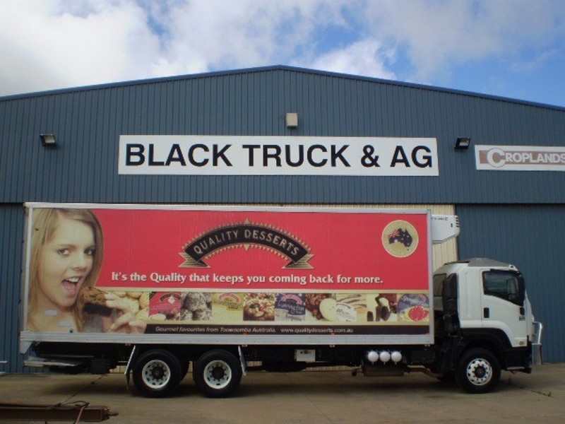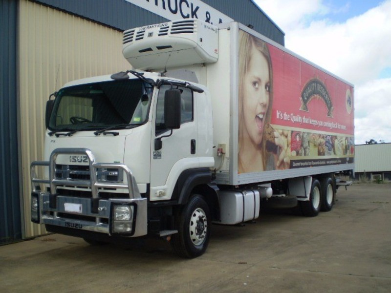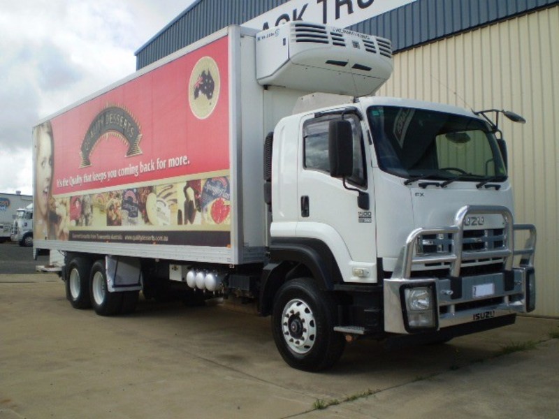 2012 Isuzu FX1500 long Fridge Pan. 350hp Sitec Motor, 8 Speed Manual Gearboxr6x2, Airbag Suspension, 3 seater, 14 pallet Refrigerated Body, Dual power, Tuck away Anteo Tailgate lifter, Barn Doors, 275,000kms, GVM-24,000kg, GCM-36,000kg.r