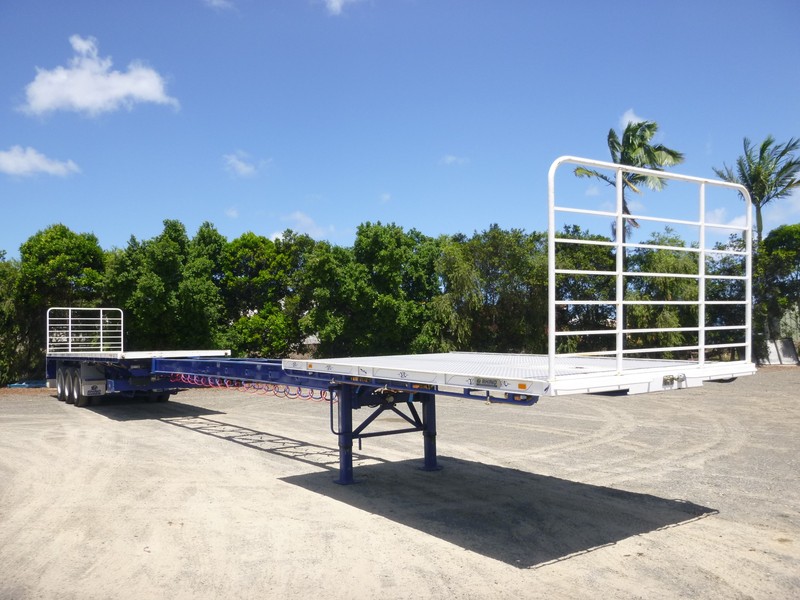 RHINO EXTENDABLE O/D TRAILER, 9/2012, 48ft x 2.50, spring suspension, spider rims, 2 pin placements, pin to the centre of rear axle 10.80m / 11.42m,, pin to the front of trailer 0.60m / 1.20m, opens to 22.50m with 9 x 0.90m adjustments, front and rear loading boards, load binders, dual spare tyre carriers, toolbox, timber box, water drum, revolving light. Tare 10.02T.
