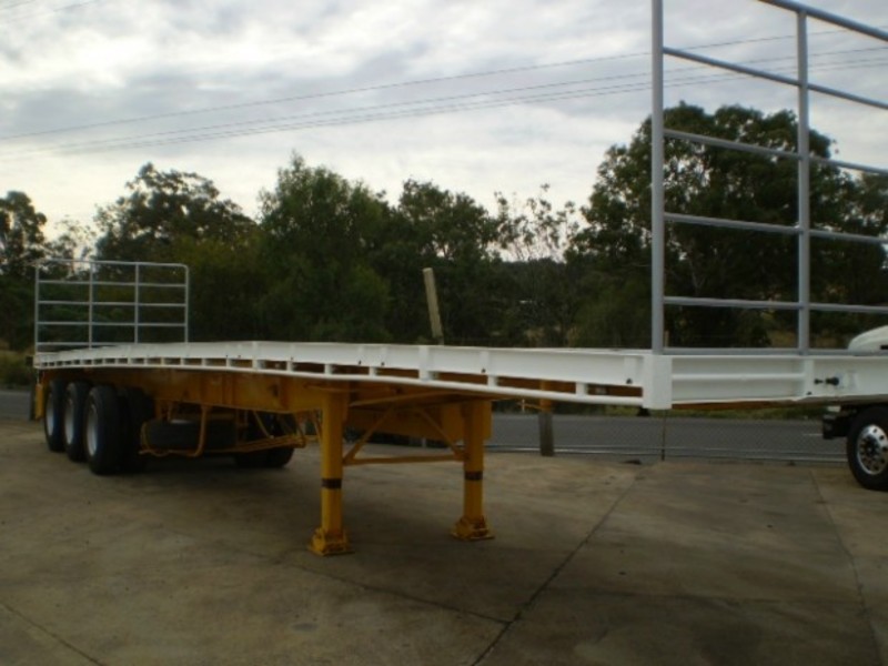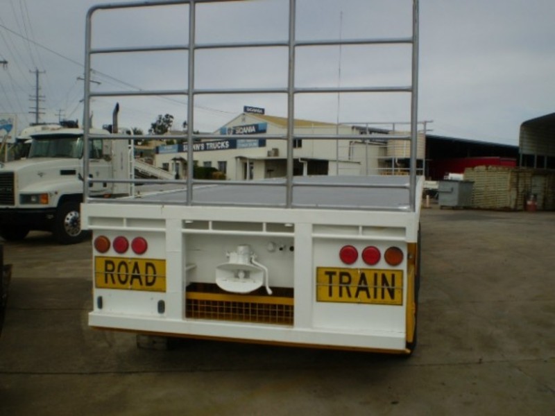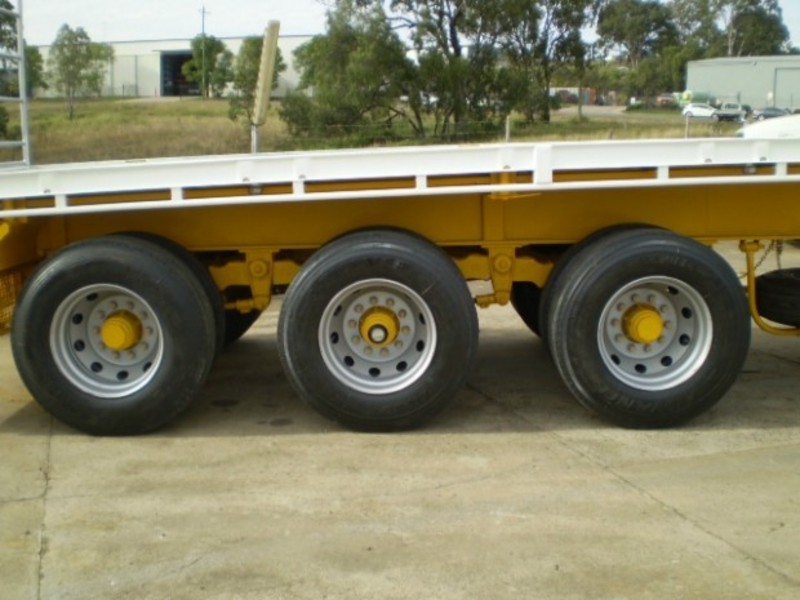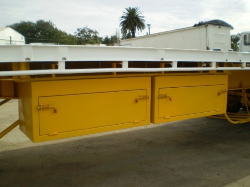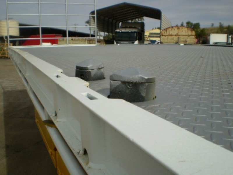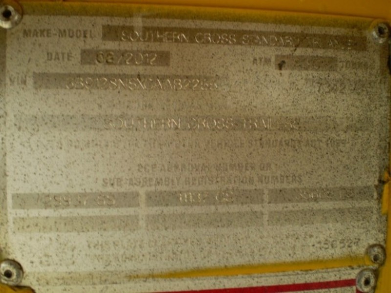 2012 SOUTHERN CROSS 45FT FLAT TOP - 3 way container pins – spring suspension –2 x tool boxes – front and rear rack –bolster holes led lights new paint.10 stud rims Very nice trailer QLD Roadworthy.