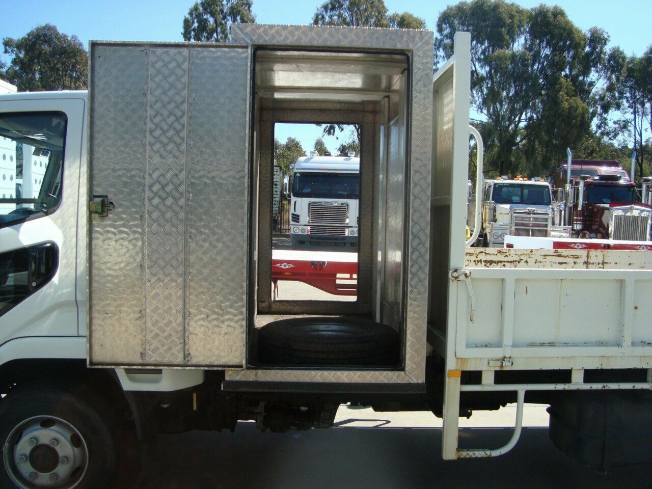 2013 Fuso Fighter 1024 Tipper, 6 speed manual, 240 hp engine, Steel tipper body, full width toolbox behind the cabin, 2 way tailgate, Set up for towing with pintle hook and air lines. Tare: 5400. GVM 10,400, GCM 20,000. Reverse Camera, Satnav and multimedia system. Registered to 29/7/2020 . Body is 4,000 mm long with drop sides. Remember tippers do not last long, call now to arrange a test drive.