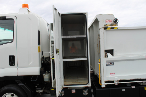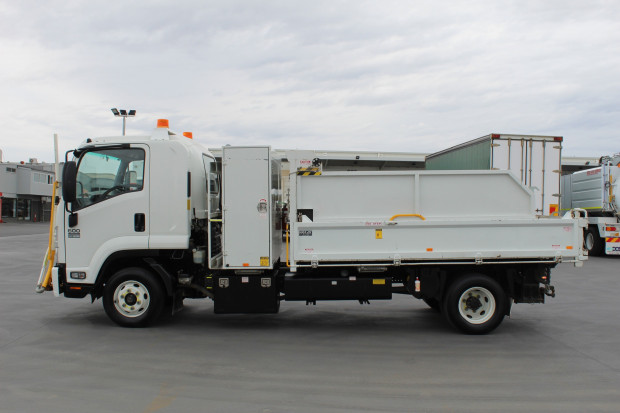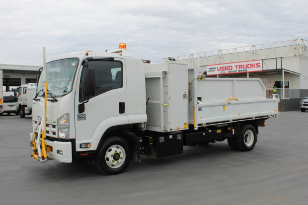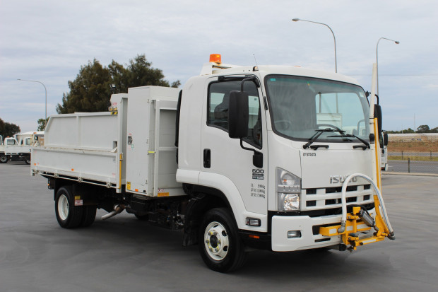 2013 Isuzu FRR 600 Council Specifications, Fitted with a Steel Tipper. Measures 3.5m (L) x 400mm (H) x 2.3m (W). Fitted with Amber Beacons, Sign Rack, Tool Chest with Shelves, Side Access Ladder, Steel Tray, Two-Way Tailgate, Drop Down Sides, Cone Holder, Tow Bar, Pintle Hook, Ring Feeder, 7 Pin Plug, Reverse Camera, Air Trailer Brake Ports, Hand Wash Station, 200L Fuel Tank, Underbody Tool Box, Front Mounted Hydraulic Water Hose/Boom. Driver and Passenger SRS Airbags, Remote Central Locking, Power Windows, Electric and Heated Mirrors, Cruise Control, Red Forge on Board Scales, Multimedia Player, Electric Trailer Brakes, Front Boom Controller, 235HP 6 Cylinder Isuzu Turbo DIesel Engine, 6 Speed Manual, Air Conditioning. Travelled 107,393kms.