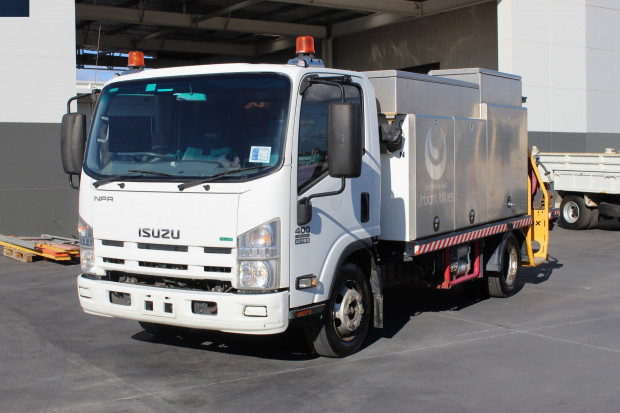 2013 Isuzu NPR 400 MED With A 4.1m X 2.29m Service Body Including Toolboxes With Shelves, Shovel Holders, Reverse Camera, Amber Beacons, Led Work lights, Hose Reel, Vice Grip, Hand Wash Station, Easy Access Steps, Pipe Rack, Cone Holder, Underbody Tool Box, Multi Hitch Tow Bar, Air Compressor, 2000w Power Invertor, Heated Mirrors, Touch Screen Cd Stereo, Power Windows, Travelled 173,533kms