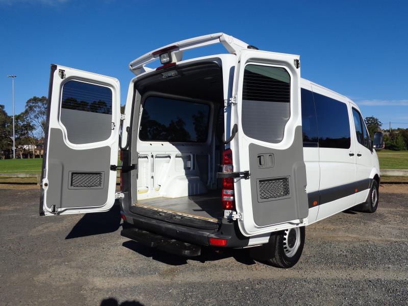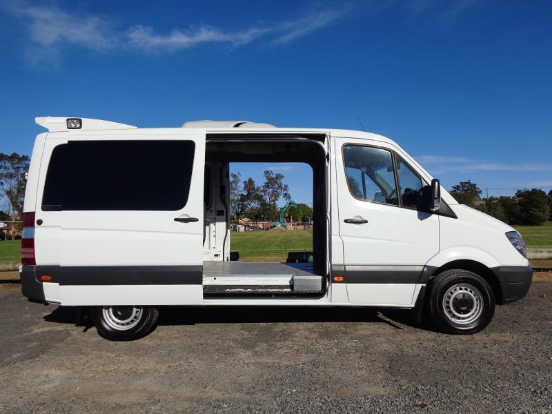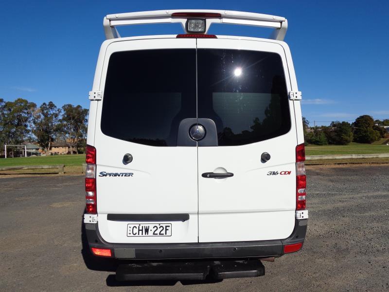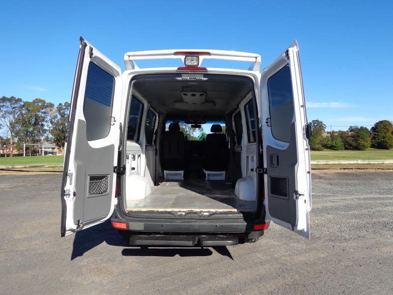 This is a One Owner Government Department 316CDI, 7 Speed Automatic Transmission, Sprinter that has been maintained to the highest standard from new. It has lots of additional features worth at least $10,000.00 such as Driving Lights, Twin Sliding Doors, Windows all round that are Tinted, Rear Air Conditioning, Curtain Air Bags as well as Driver and Passenger Air Bags, Airbags in Both Seats, Reverse Parking Sensors, Reverse Camera and Heavy Duty Flooring in Rear. Get $2723.00 Back if gst registered. Other features include Anti-lock Braking, Automatic Air Con / Climate Control, Books and Spare keys, Brake Assist, Central Locking Remote Control, Cloth Trim, Cruise Control, Electronic Brake Force Distribution, Electronic Stability Program, Engine Immobiliser, Power Mirrors, Power Steering, Power Windows, Radio Compact Disc Player and sought after Barn Doors. This is the best van on the market as it has been serviced every 10,000klms, Auto service done twice, new brake pads and discs replaced at 112,242klms, 4 new tyres were fit at 121,221klms, last service just done at 130,458klms and rego not due till January 2017. This really is great value for such a diverse vehicle. It would be a wonderful vehicle to convert into a campervan or have as a work horse. This really does represent fantastic value. Best finance packages available (Tap). Have complete confidence buying from an Australian owned and operated dealership. Appointments are necessary due to all our vehicles being locked under cover for security and cleanliness reasons. Be assured that all our vehicles are of a very high standard as we are genuinely "fussy" people. Please ask about our available 5 year extended warranty package. Lots of other vehicles to choose from. ABN holders will receive a tax invoice to claim the GST back on this vehicle. We can deliver anywhere in Australia so don't let distance hold you back! Also note that our cars are guaranteed not to be on any type for register for finance, speedometer discrepancies etc. All have been thoroughly checked. For the sake of accuracy this van was built 11/12 but first sold, registered and on the road January 2013.