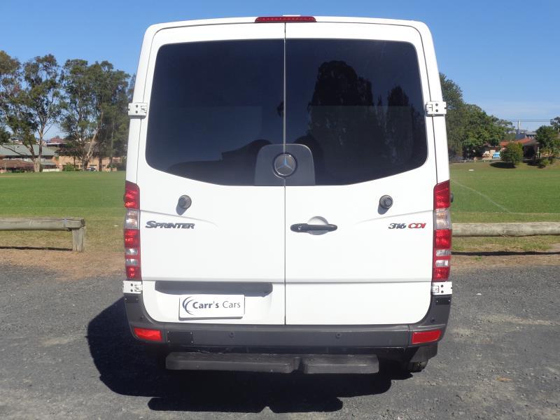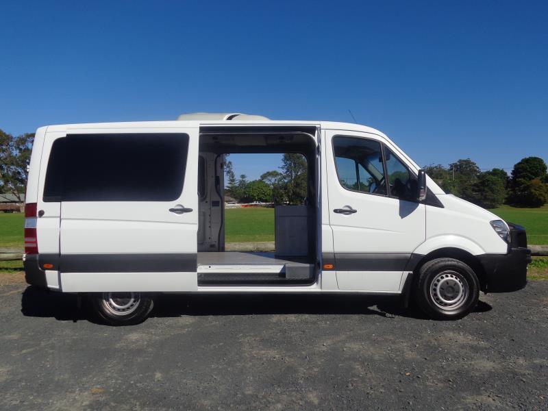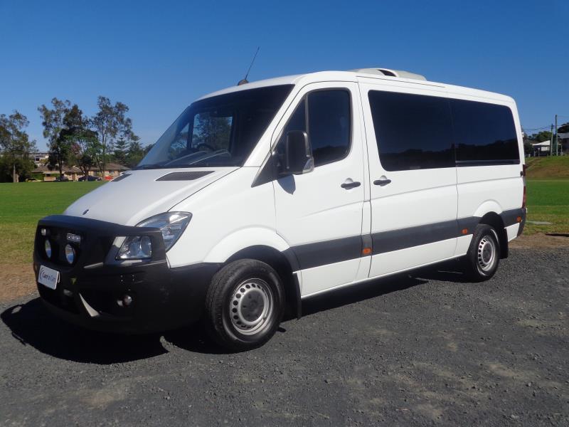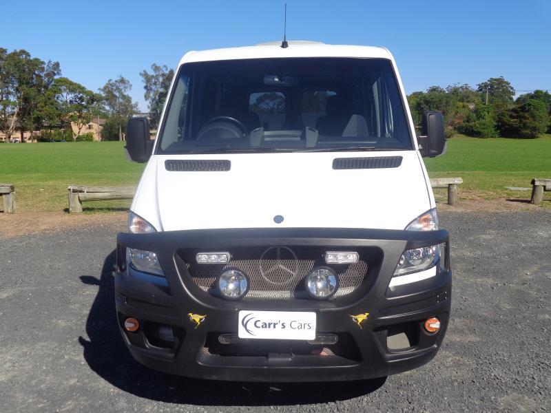 One Owner with Bull bar and Spot Lights, 7 Speed auto, turbo Diesel Sprinter with extras worth at least $15,000.00 include: Poly Smart Bull Bar, Twin Sliding Doors, Window Pack All Round Rear, Tinted Windows all round, Rear Air Conditioning, Curtain Air Bags as well as Driver and Passenger Air Bags, Airbags in Both Seats, Reverse Parking Sensors, Reverse Camera, and Heavy Duty Flooring in Rear. This white 2013 Sprinter van has been very highly maintained from new! Get $2,995.00 back if GST registered. Standard features include: Books and Spare keys, Anti-Lock Braking, Automatic Air-Con / Climate Control, Brake Assist, Central Locking Remote Control, Cloth Trim, Cruise Control, Electronic Brake Force Distribution, Electronic Stability Program, Engine Immobiliser, Power Mirrors, Power Steering, Power Windows, Radio Compact Disc Player and sought after Barn Doors. This really is great value for such a diverse vehicle. It would be a wonderful vehicle to convert into a campervan or have as a work horse. This really does represent fantastic value. This van has 4 Fantastic tyres. Best Finance packages available (TAP) and all trades welcome. Have complete confidence buying from an Australian owned and operated dealership. Appointments are necessary due to all our vehicles being locked under cover for security and cleanliness reasons and in two convenient locations. Be assured that all our vehicles are of a very high standard as we are genuinely "fussy" people. ABN holders will receive a tax invoice to claim the GST. We can deliver anywhere in Australia so don't let distance hold you back! Also note that our cars are guaranteed not to be on any type of register for finance, speedometer discrepancies etc. All have been thoroughly checked.