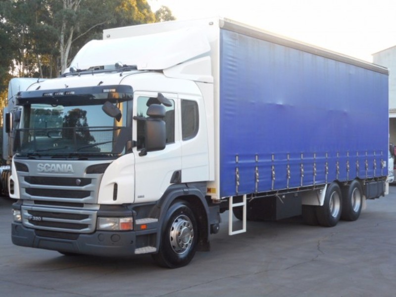 2013 scania p320 6x2 lazy axle only 243000 klms sleeper cab,auto gearbox on air bag suspension fitted with 14 pallet tautliner .rear doors and gates. very tidy unit.