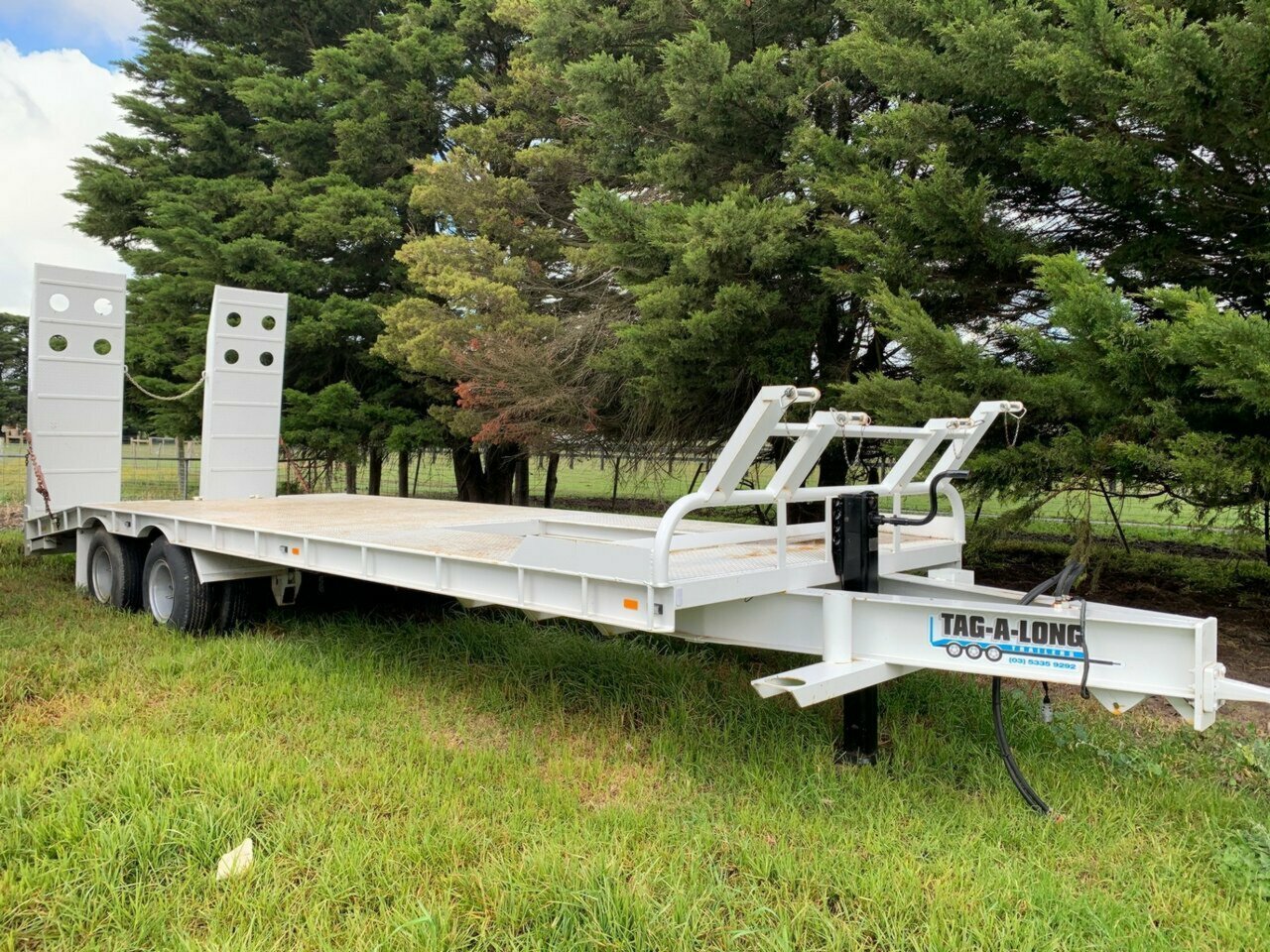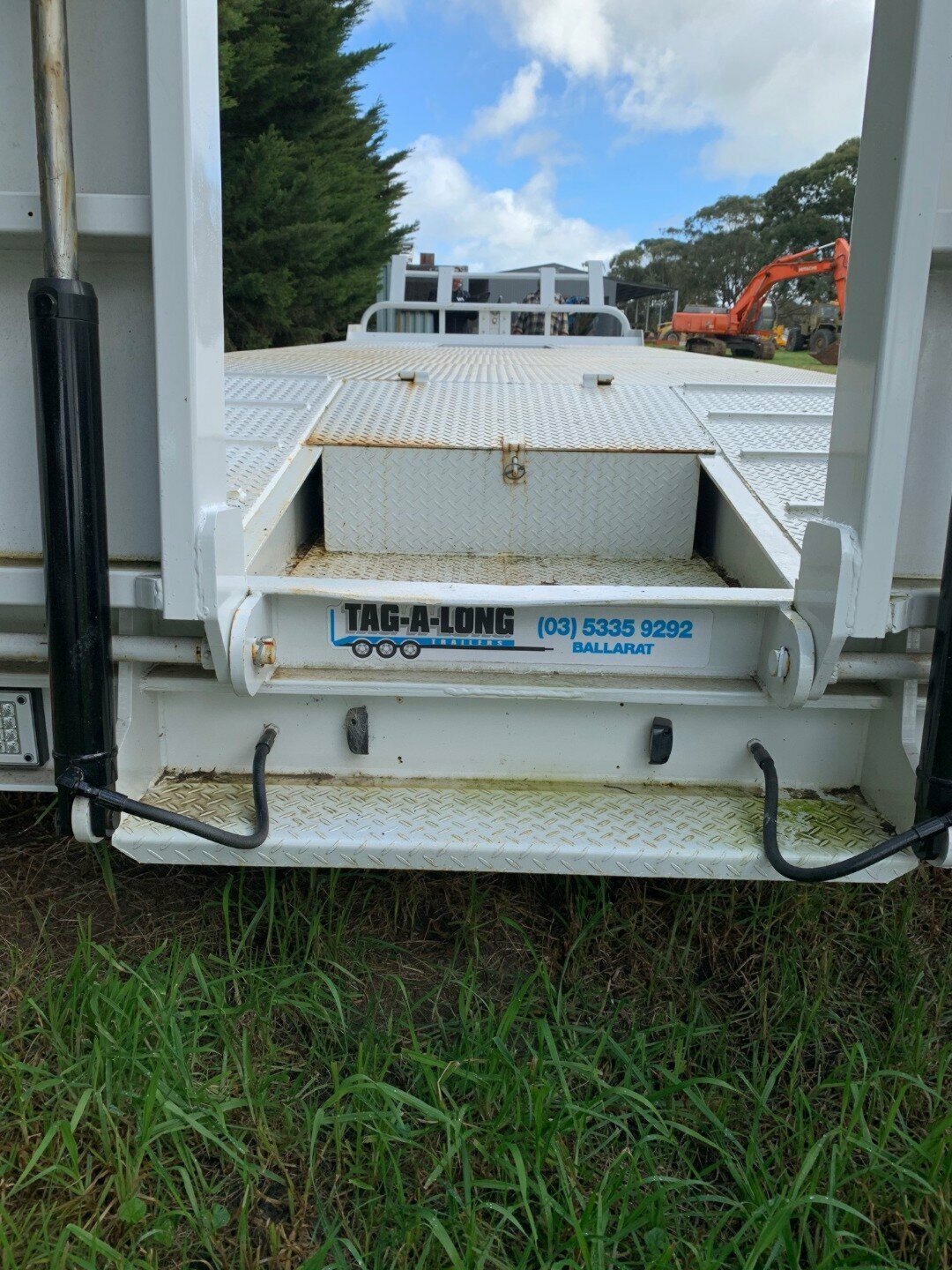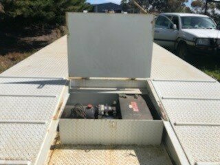 Includes GST, Plus on road costs. ATM 21,000. 10 m total trailer length with a deck length of 8 m, Push button hydraulic ramps, new power pack, new heavy duty battery, Pendant control on ramp lift, spring suspension, 15 `` spider wheels on Tandem Axle, Tare weight 5,700 kgs. More information is available from the used sales team.