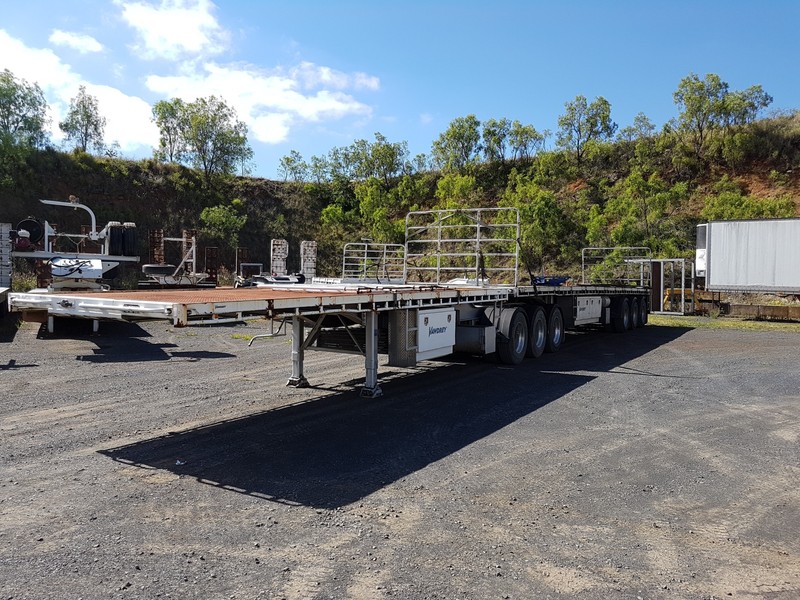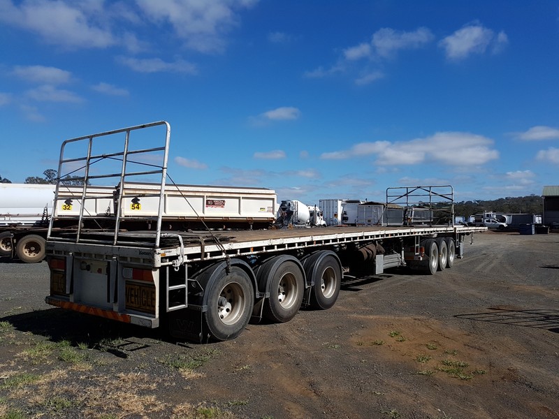 09/13 VAWDREY B DOUBLE FLAT DECK COMBINATION ON BPW ECO PLUS AXLES AND AIR SUSPENSION , GATES , TOOL BOXES , 10 STUD ALLOY WHEELS , SLIDING STRAPS , LED LIGHTS , DUNNAGE BOXES BOTH TRAILERS .