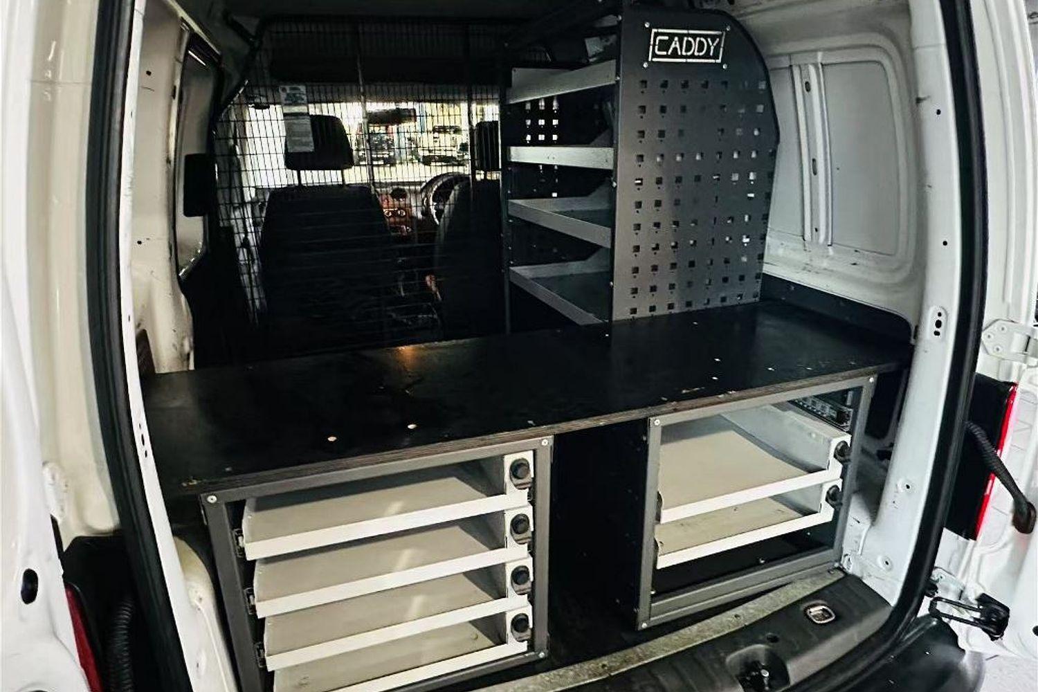 Custom internal Caddy racking for organised storage