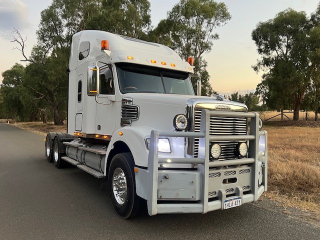 140 tonne GCM DD15 tuned 600+hp 18 speed road ranger box Double bunk Ice pack Hydraulics for 3 trailer operation Brand new super single steer tyres Brand new windscreen Brand new batteries New clutch kit and thrust bearing locking HD Diffs 1,003,333kms $65000 no GST charged. Clean and tidy heavy workhorse! Located Cobram, Vic Currently registered in WA