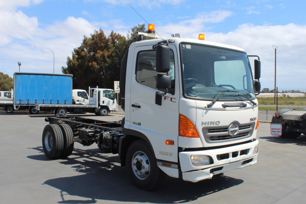 2014 Hino FC500 1022 Cab Chassis. Rails Measure 4.15m (L) x 830mm (W). Fitted with 200L Fuel Tank, Reverse Camera, Amber Beacons, Power Windows, Electric and Heated Mirrors, Drivers SRS Airbag, Multimedia Player, Cruise Control, ABS Brakes, 6 Cylinder Turbo Diesel Engine, 6 Speed Manual Transmission, Air Conditioned. Travelled 103,685kms