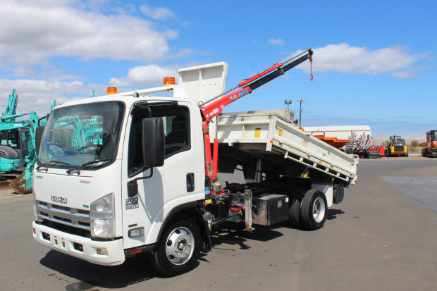 2014 Isuzu NPR 250/300 Tipper. Tipper Body Measures 2.81m (L) x 350mm (H) x 2.16m (W). Fitted with Drop Down Sides, Tie Down Rails, Tow Bar with Multi Hitch and 50mm Ball, Electric Brakes, Amber Beacon Lights, Pull Out Tarp, Large Toolbox, Sign Rack, Underbody Toolbox, Handwash Station, Cone Holder, Multilift ML110 Crane with 1 Tonne Lifting Capacity, Multimedia Player, Air Conditioning, Power Windows, Electric and Heated Mirrors, Dual SRS Airbags, Automatic Transmission, 155HP Isuzu Turbo Diesel Engine, Travelled 401,310kms