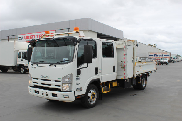 2014 Isuzu NPR400 Crew Tipper. Measures 2.87m (L) x 350mm (H) x 2.36m (W). Fitted with Steel Three-way Tipper, Drop Sides, Two-way Tailgate, 2 Large Rear Toolboxes, Tie Rails, Pull Out Steps, Amber Beacon Lights, Pull Out Tarp, Sunvisor, Ring Feeder, 50mm Tow Ball, Electric Trailer Brakes, 140L Fuel Tank, 7 Seater, Dual SRS Airbags, Power Windows, Electric Mirrors, ABS Brakes, Multimedia Player, 4 Cylinder 155HP Isuzu Turbo Diesel Engine, 6 Speed Manual, Air Conditioning, Travlled 134,456kms