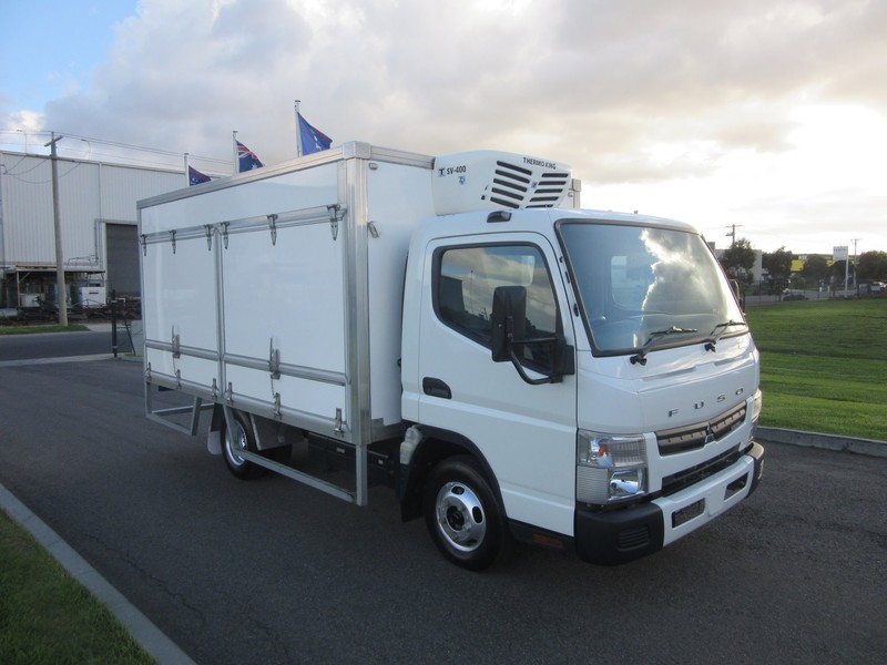 2014 MITSUBISHI 515 REFRIDGERATED CANTER, 4 CYL 110KW TURBO INTERCOOLED DIESEL ENGINE, 6 SPEED AUTOMATED MANUAL TRANSMISSION, AIRCON, POWER WINDOWS, TOUCH SCREEN AUDIO, REVERSE CAMERA, ***LOW K'S*** FITTED WITH 3.8LONG X 1.8HIGH X 2.3WIDE ELITE TRUCK BODIES REFRIDGERATED PAN, GAS STRUT POP UP SIDE DOORS, SHELVING AND RACKS, THERMOKING SV-400 COOLING UNIT, EXCELLENT CONDITION TRUCK.