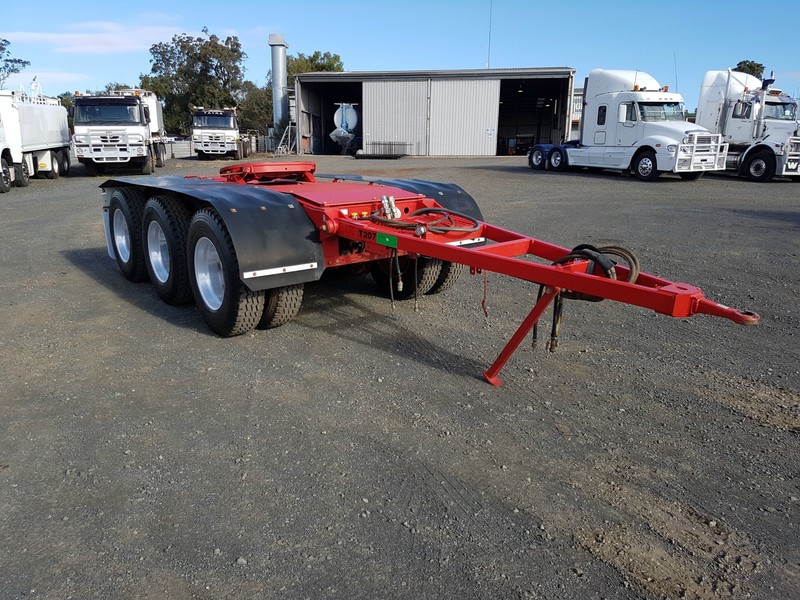 09/15 AZMEB TRI AXLE DOLLY ON BPW AIR SUSPENSION AD AXLES , SIDE TIPPER HYDRAULICS LINES FITTED,WEIGHT GAUGE ,K HITCH GREASELESS TURNTABLE .