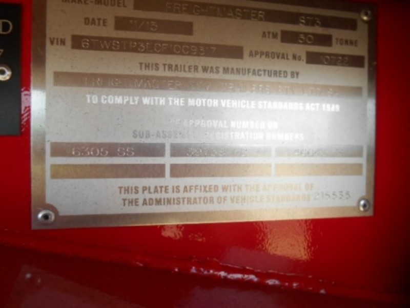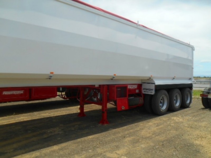 2015 new Freightmaster Tri-axle Steel Chassis tipper. Spring suspension, 5" Round York Road Baron Axles, 10 stud hubs. Ringfeeder bracket inc. air, electrical, nil coupling. Vendor asking $69,900. Stock ref # C2111