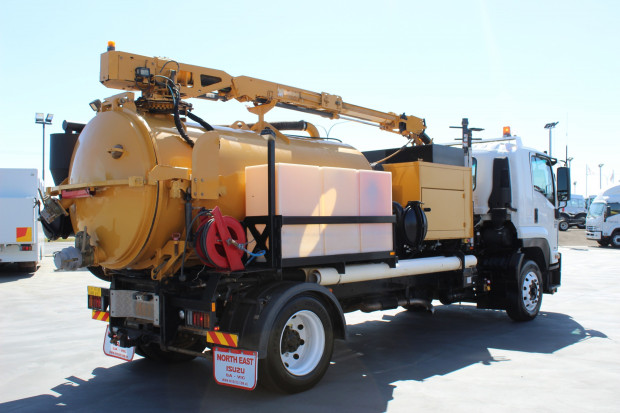 2015 Isuzu FTR 900 Vac Truck. Truck Measures 6.0m(L) x 2.4m(W). Includes Amber Beacons, Battery Isolators, Underbody Tool Box, Reverse Camera, Tow Bar, 7 Pin Plug, Reverse Lights, Work Lights. Driver and Passenger SRS Airbags, ABS Brakes, Cruise Control, Power Windows, Electric and Heated Mirrors, CD Radio, Bluetooth Connectivity, GME UHF Radio. 255 Horse Power Turbo Engine. Automatic Transmission. Air Conditioning. Traded Direct from the Original Owner & Travelled 55,751kms
