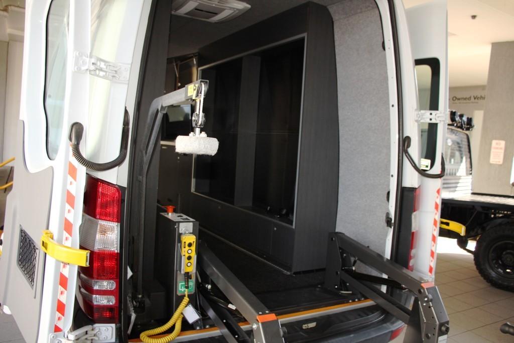 Mercedes Benz Sprinter Camper 313 Long Wheel Base High Roof one owner NDIS vehicle with only 20 000kms and presents like a new camper with spacious 4.4 x 1.9 metre interior reverse camera blue tooth Solar panel with inverter and 240 volt power dual deep cycle house batteries Dholandia 350 Kg hoist with separate power Carolift mobility chair hoist Fiamma F45S awing 21? flat screen TV custom fold out stairs with railing Dometic rear air command air conditioning independently powered perfect service history normal car licence only long registration this unique van is ready to camper conversion or its original disable use or mobile office. See phauto.com.au for more details. Call and make your enquiry today. Trade ins welcome Speak to our Finance department about our great finance offers. This vehicle is also advertised at Auction on various Auction Sites. The best in the north west 30 minutes from the Harbour Bridge.