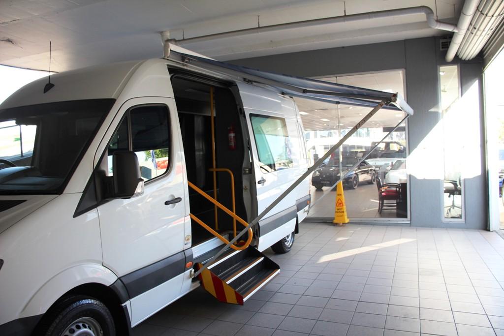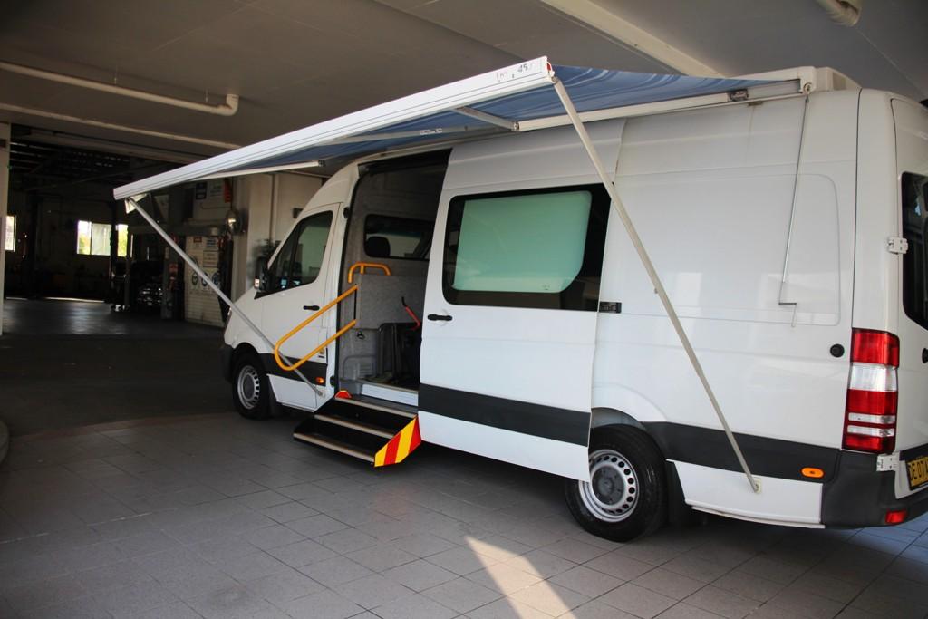 Mercedes Benz Sprinter Camper 313 Long Wheel Base High Roof one owner NDIS vehicle with only 20 000kms and presents like a new camper with spacious 4.4 x 1.9 metre interior reverse camera blue tooth Solar panel with inverter and 240 volt power dual deep cycle house batteries Dholandia 350 Kg hoist with separate power Carolift mobility chair hoist Fiamma F45S awing 21 flat screen TV custom fold out stairs with railing Dometic rear air command air conditioning independently powered perfect service history normal car licence only long registration this unique van is ready to camper conversion or its original disable use or mobile office. See for more details. Call and make your enquiry today. Trade ins welcome Speak to our Finance department about our great finance offers. This vehicle is also advertised at Auction on various Auction Sites. The best in the north west 30 minutes from the Harbour Bridge.