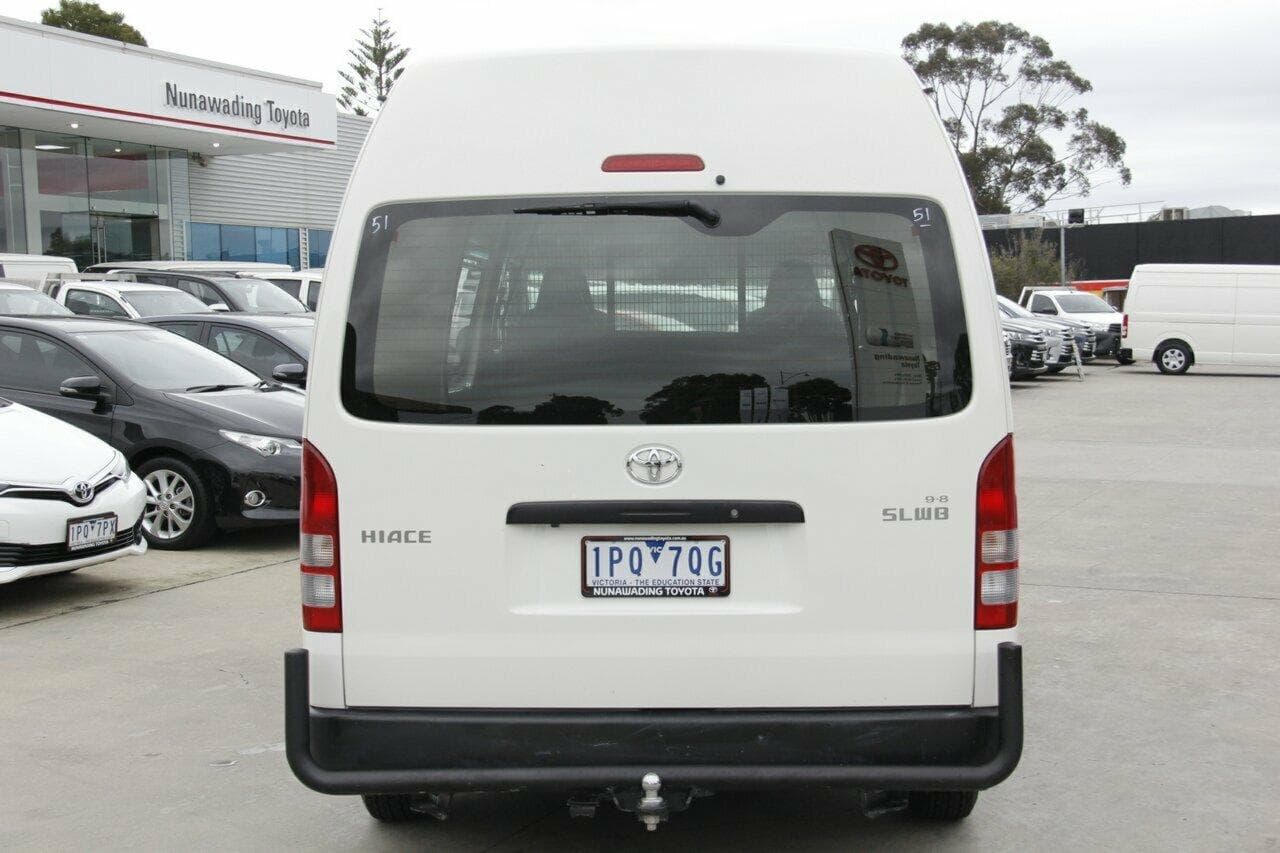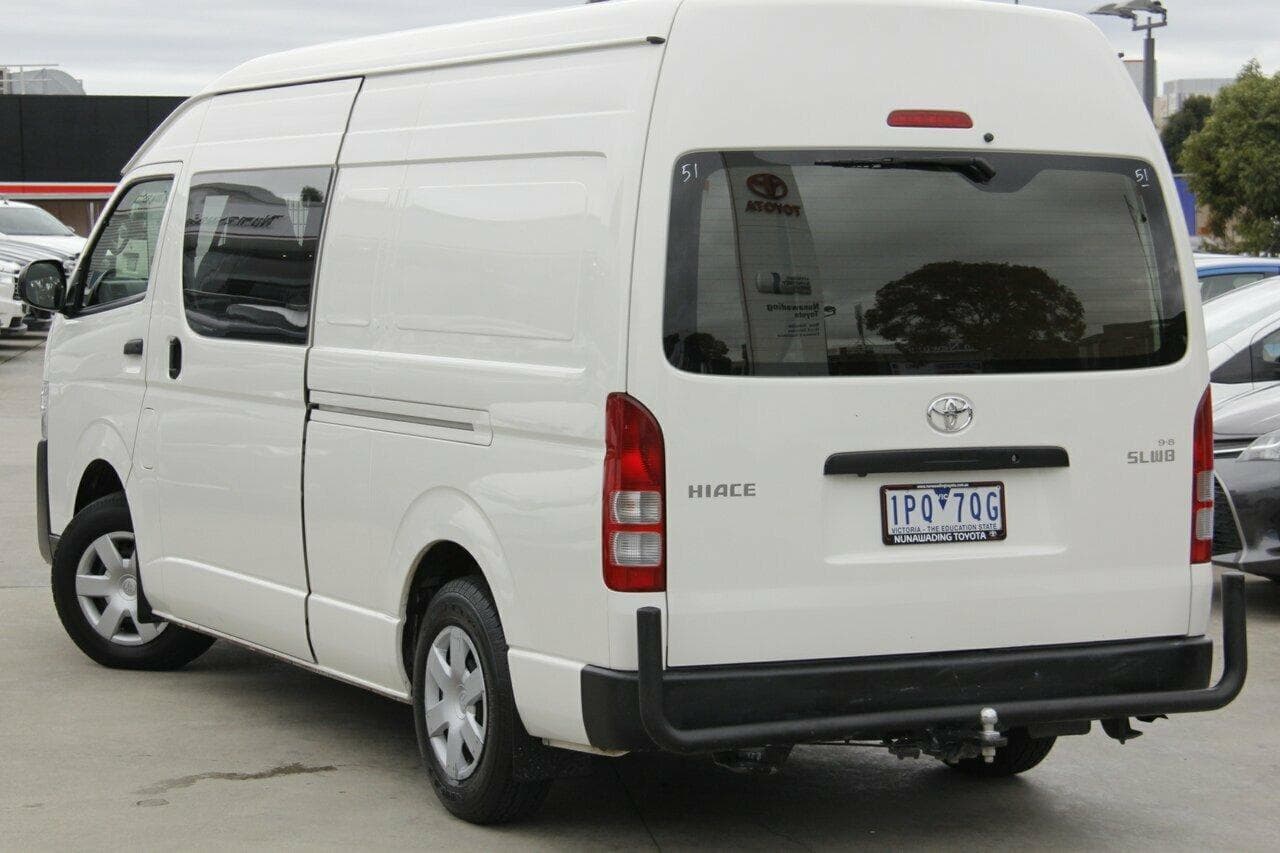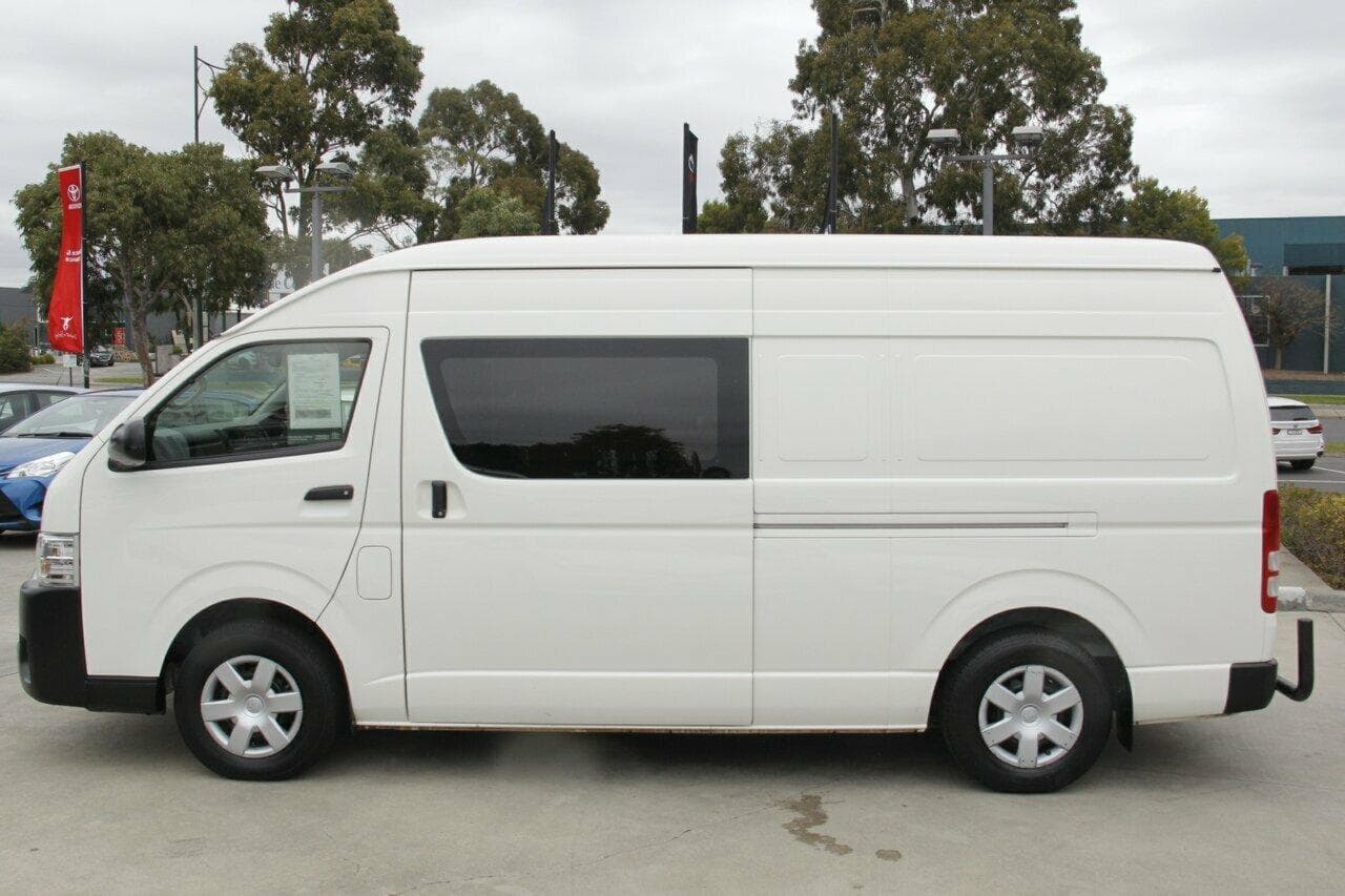 Here we have a 2015 Toyota Hiace KDH221R Van High Roof Super LWB 5dr Auto 4sp 3.0DT [Jan] * Auto, Van, White * Bluetooth Connectivity * Cruise Control * Tow Bar with Rear Protector * Cargo Barrier * Service History * Great Work Unit For your Peace of Mind this vehicle has been inspected by our Qualified Mechanics and comes with a Current Road Worthy Certificate. We are Conveniently Located only 25 minutes away from the CBD. TRADE INs Welcome and we offer Competitive Finance offers available. Australia's No.1 used car dealer. We specialise in all your auto and manual vehicle needs. We also take care of any 4x4 utility SUV needs. Come and see Victoria' BIGGEST selection of used Utes, vans, people movers wagons.