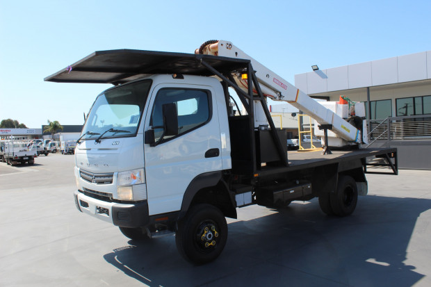2016 Mitsubishi Canter 4x4 EWP. Measures 4.71m (L) x 2.27m (W). Fitted with Amber Beacon Lights, Vera Lift VST 3100-4 9.4m EWP (out of cert), 100L Lockable Fuel Tank, Dual SRS Airbags, ABS Brakes, CD Radio with Bluetooth Connectivity, Air Conditioning, Heated Mirrors, Power Windows, 3 Seater, GME UHF Radio, 5 Speed Manual Transmission, Travelled 49,465kms