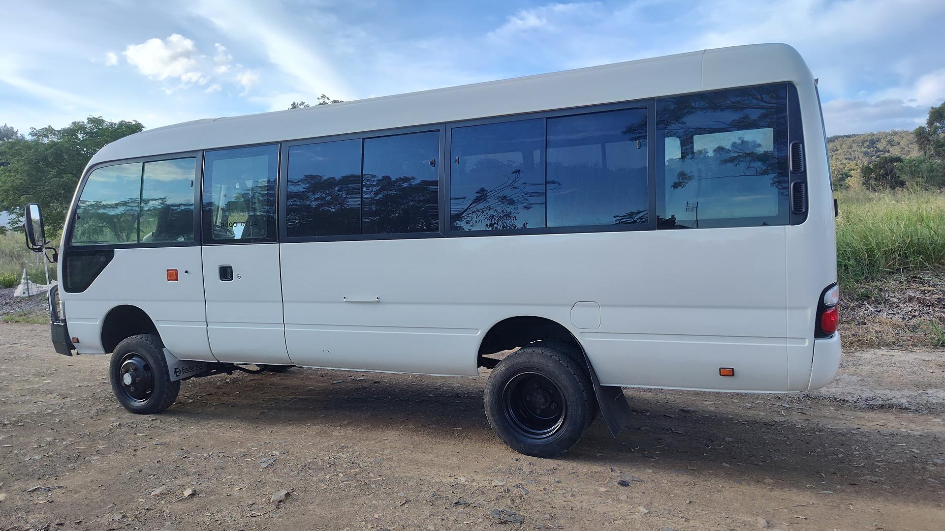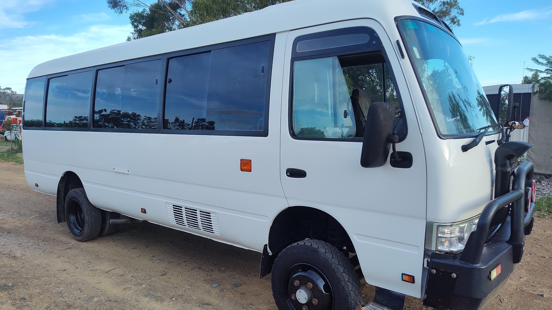 2016 Toyota Coaster 4x4 Deluxe 51 Series, automatic transmission, bullbar, snorkel, 21 seats, high back with full seat belts, automatic step lowers when door opens, high and low range 4x4, has had mine use and well maintained. Currently in our workshop being prepared for rego.