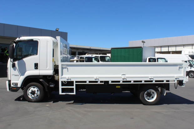 2017 Isuzu FRR 110-260 Tipper. Measures 4.52m (L) x 550mm (H) x 2.35m (W). Fitted with 200L Lockable Fuel Tank, Drop Down Sides, Two-way Tailgate, Tow Bar, Electric Trailer Brakes, Side Access Steps, CD Radio with Bluetooth Connectivity, Electric and Heated Mirrors, Power Windows, Cruise Control, Overhead Storage, 260Horsepower Isuzu Turbo Diesel Engine, 6 Speed Manual, Air Conditioning. Travelled 149,396kms