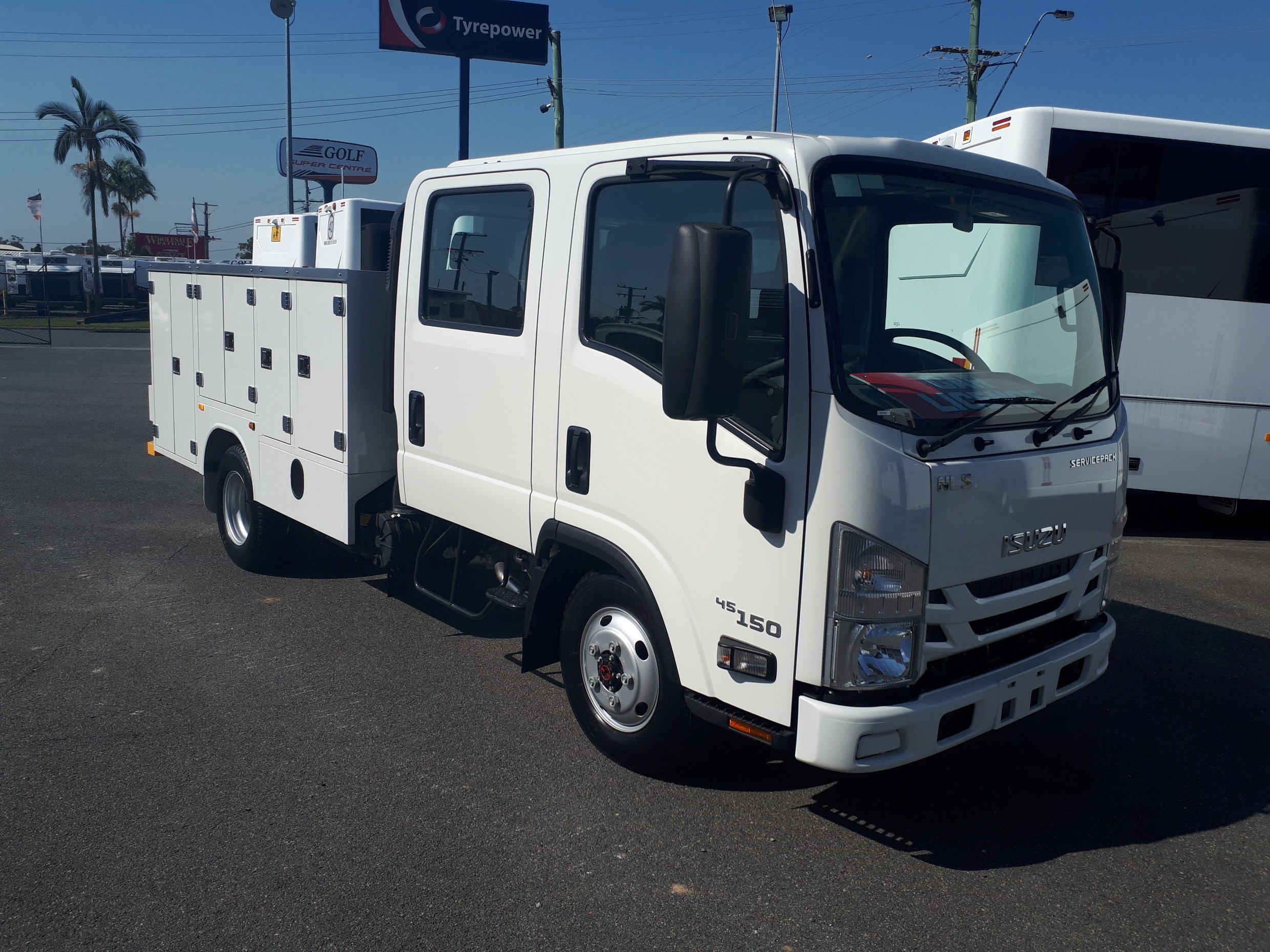 This is a brand new all-wheel drive Isuzu NLS 45-150 Crew Cab Servicepack. The body has remote central locking like the cabin. 1 Push of the button locks all doors and unlocks as well. LED lights in all of the toolboxes. Reversing camera. One only at this special price - won't last.