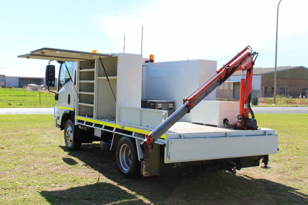 2017 Isuzu NNR55-150 *** Includes Maxilift Crane *** Service Body with Large Toolboxes & Internal Shelving, Fitted with an Isuzu Alloy Bullbar, Spotlights, Amber Beacons, Lashing Rings, Lockable Diesel Tank, Underbody Toolboxes, Tie Rails, Tow Bar, Pintal Hook, Reverse Camera, Maxilift Crane with Stabiliser Leg, Driver & Passenger SRS Airbags, Traction Control, Power Windows, Electric Heated Mirrors, UHF, 150 Horsepower Isuzu Turbo Diesel, Manual Transmission, Travelled only 219,828 kilometres