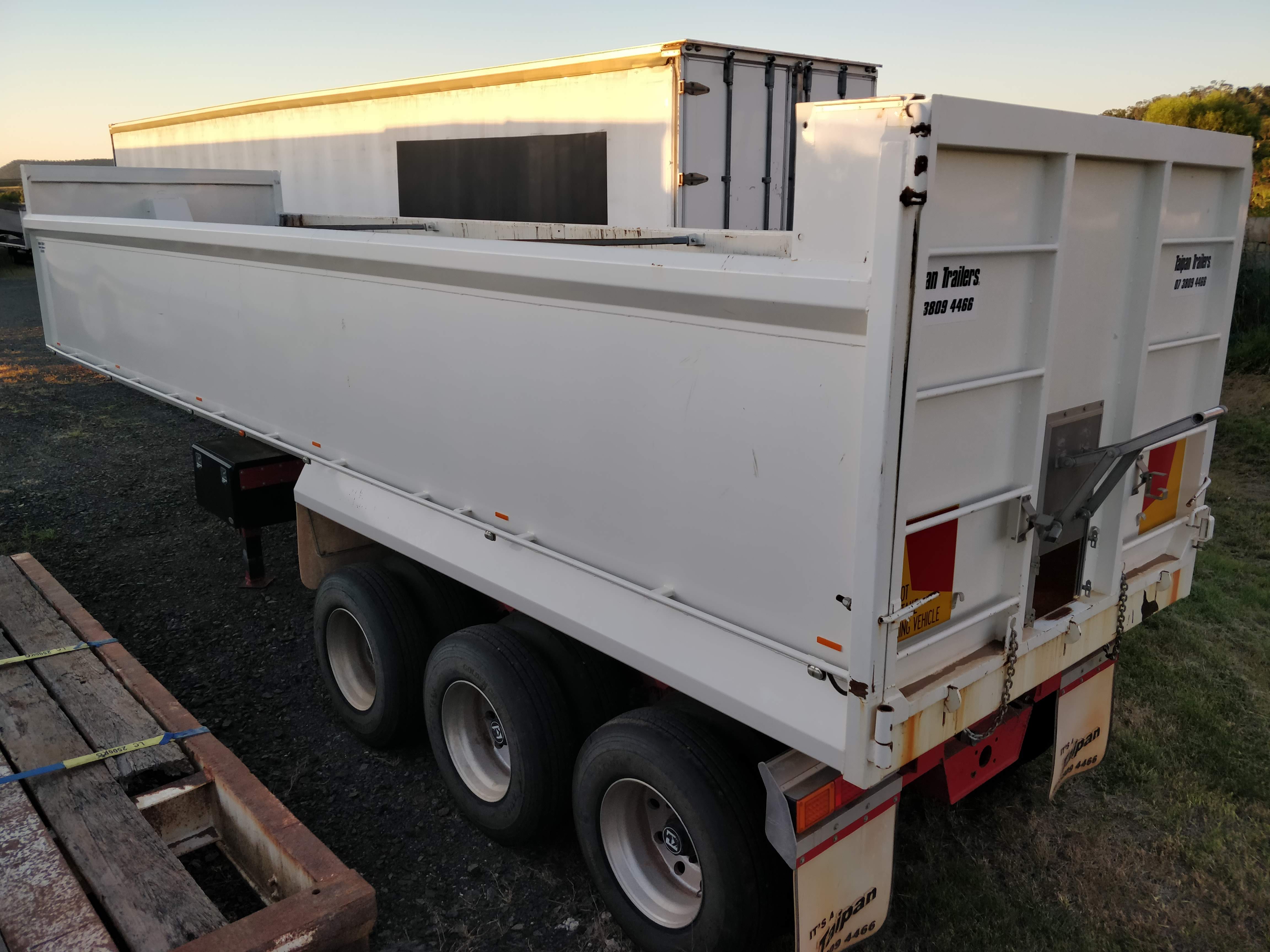 9.6mx 1.4m steel bin, R/T lead, recon. hoist, alloys.