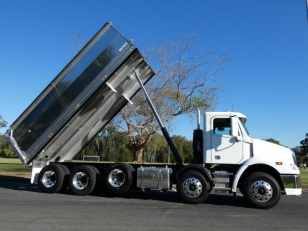 2018 Plated Freightliner Columbis CL112 10 x 4 fitted with Tefco Alloy tipping body. Rated at 360Hp, 6 speed allison transmission, Meritor drive axles with cross locks, lift up pusher axle, Durabrite alloy wheels.