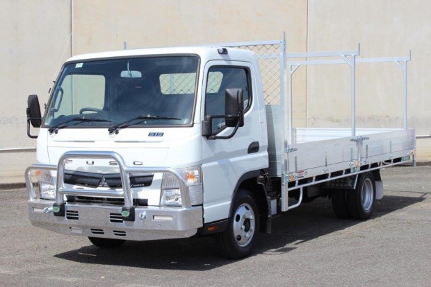 5 sp Manual Fuso 515 with 4420 (L) Internal x 2050 (W) Internal (4500L x 2100W External) Alloy Tray, 2.5T Floor, H/Duty Alloy Flush Loading Headboard, 32mm Full Length Tie-Down Rails. 300mm Split Dropsides, Removable Centre and Rear Rack,Towbar and Alloy Bullbar.