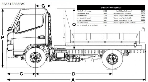 A versatile and hardworking Factory Built tipper, the city cab 515 Canter tipper is made to get into and out of those tight spaces. Rated at 6t from Factory- It is able to be derated to be driven on a car license and has a number of Fuso exclusive features and benefits not found on competitor factory tippers.