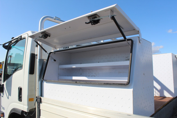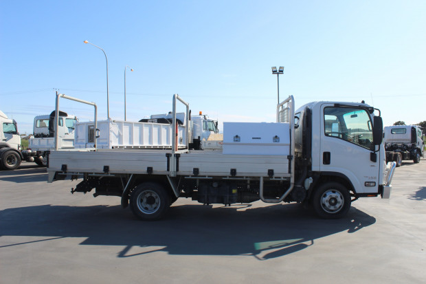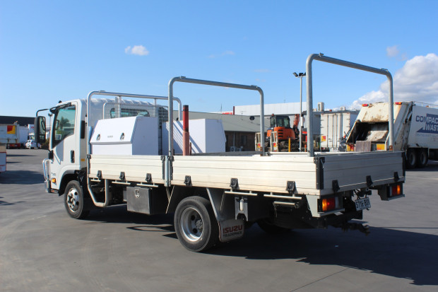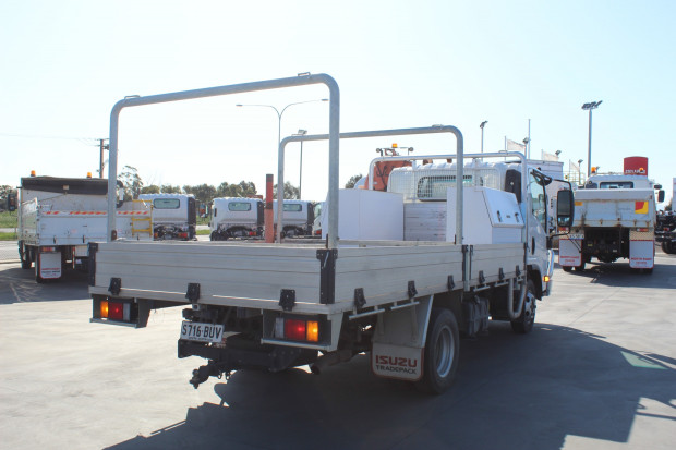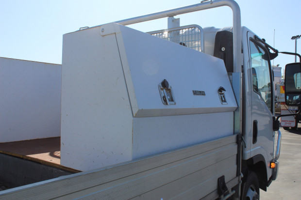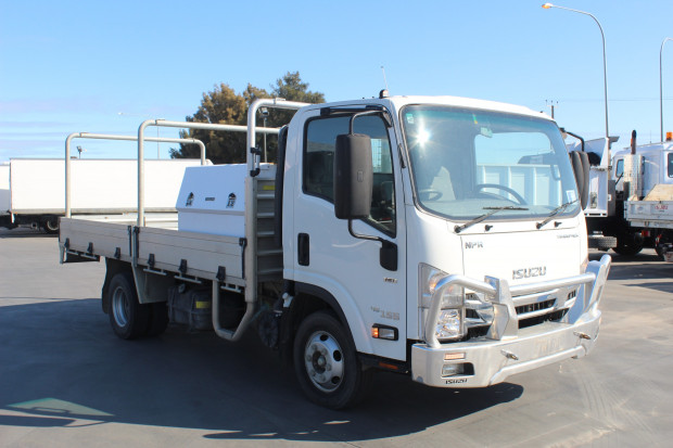 2018 Isuzu NPR 45-155 Tradepack. Measures 4.5m (L) x 320mm (H) x 2.06m (W). Fitted with Alloy Bullbar, Alloy Tray with Drop Sides and Load Racks, 2 x Toolboxes, Loading Racks, Side Access Steps, Tow Bar, Reverse Camera, Underbody Toolbox, Handwash Station, Climate Control Airconditioning, Dual SRS Airbags, ABS Brakes, Hill Start, Traction Control, Power Windows, Cruise Control, Multimedia Player, 155HP Isuzu Turbo Diesel Engine, Automatic Transmission, Travelled 36,699kms