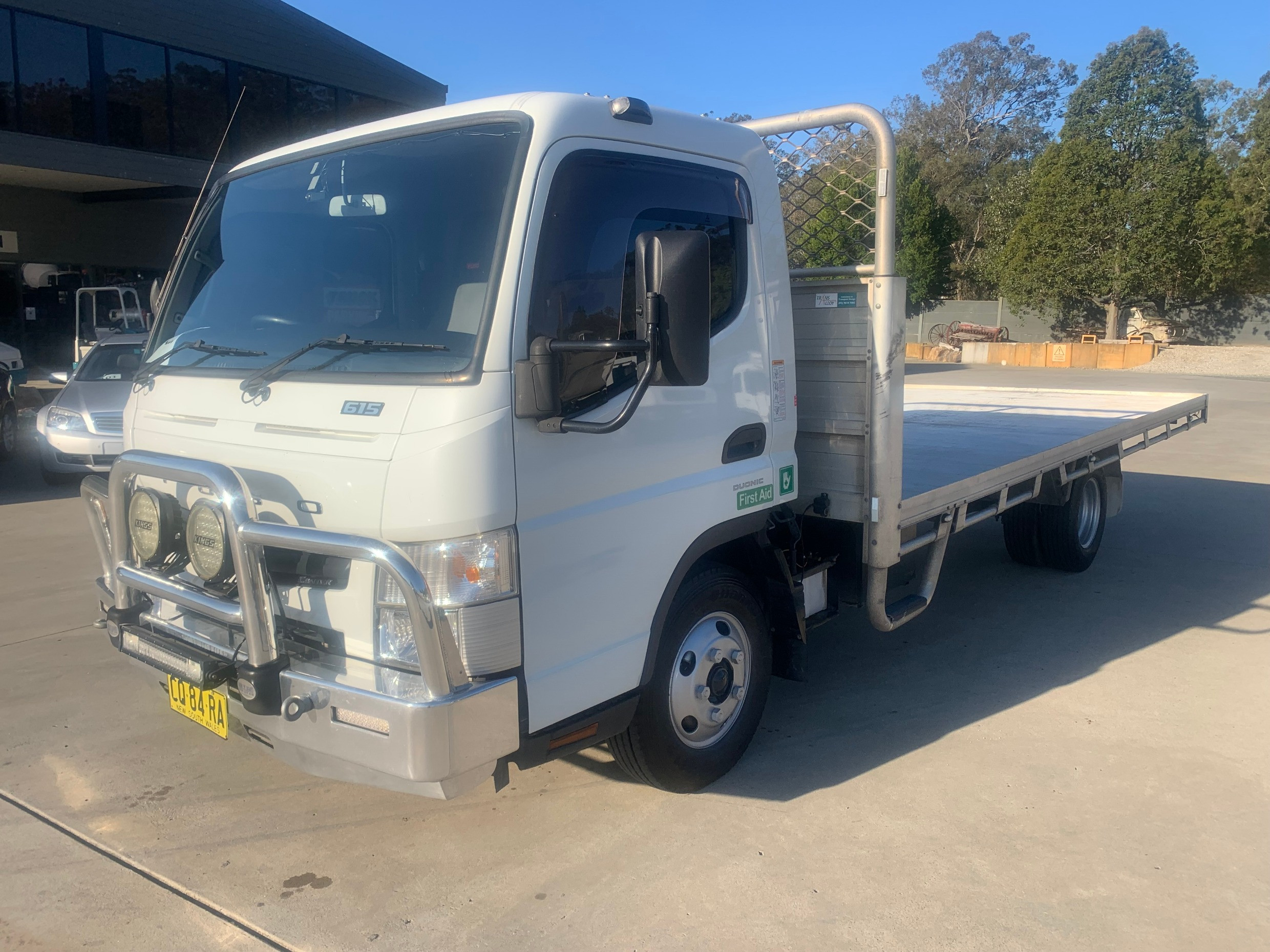 2018 MITSUBISHI/FUSO CANTER 615 FITTED WITH A 5M LONG X 2.44M WIDE ALLOY TRAY (NO SIDES), HAYMAN REECE STYLE TOWBAR WITH ELECTRIC TRAILER BRAKES, ALLOY BULLBAR WITH LIGHT BARS ETC, ALWAYS HAD CANVAS SEAT COVERS, FULL SERVICE HISTORY, 1 OWNER VEHICLE, LONG RANGE TWIN DIESEL TANKS (170 LITRES), LONG NSW REGISTRATION, CAR LICENSE, AUTOMATIC TRANSMISSION, 1.8 TONNE PAYLOAD. HIGHWAY KM'S, DP POWER CHIP, STILL HAS 2 YEARS FACTORY WARRANTY.