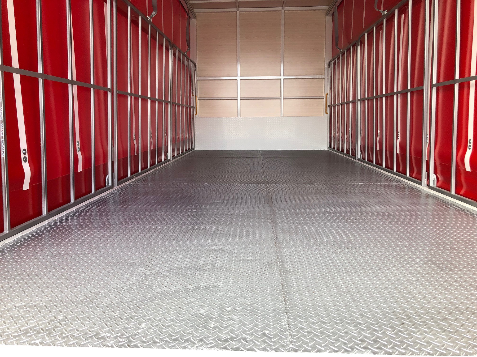 600mm high chequerplate pallet protection panel and tie rail inside front wall.