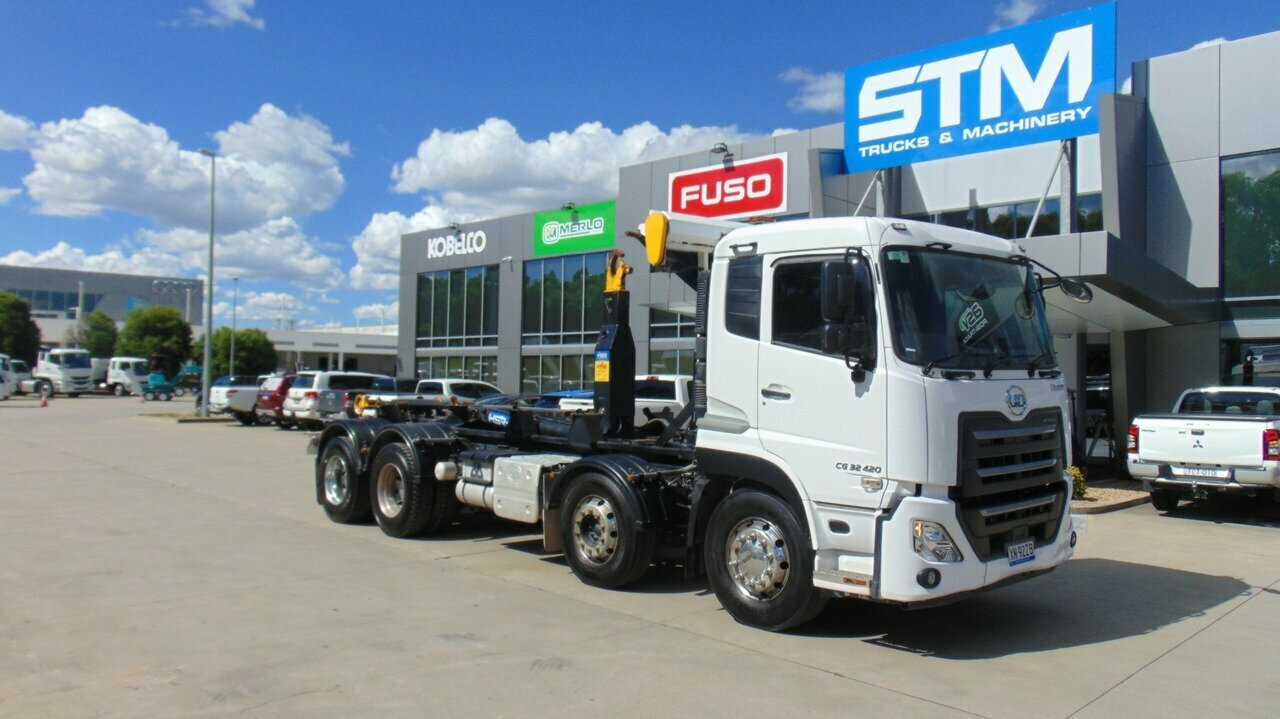 2021 UD Quon 32/420 8x4 Auto with Hyva Hook Lift GFT. 22 tonne capacity, Hydraulic Tarp system. Airbag suspension, alloy wheels,