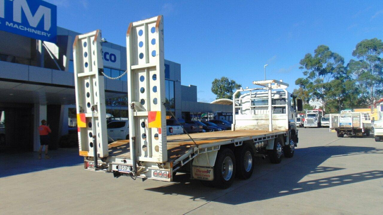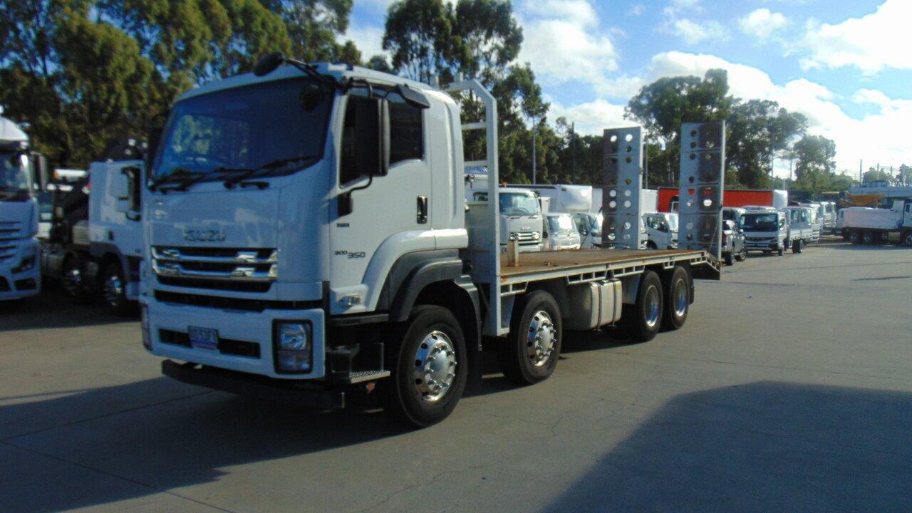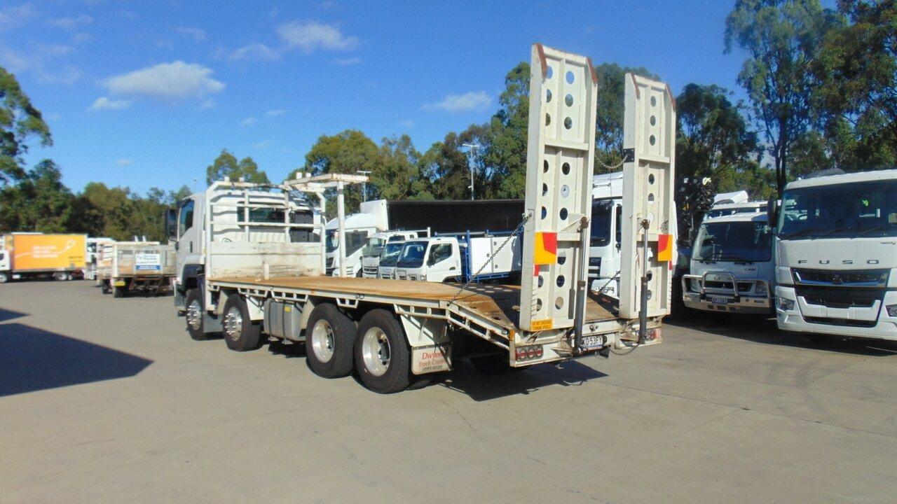 2022 Isuzu 300-350 FH White Beavertail 0.0l 8x4 - Low kilometre Isuzu FH FXJ 350 8x4 Beavertail. 7m long deck and 1m tail, PTO driven hydraulic ramps, Alloy wheels, reverse camera. Call the used truck sales team to arrange an inspection